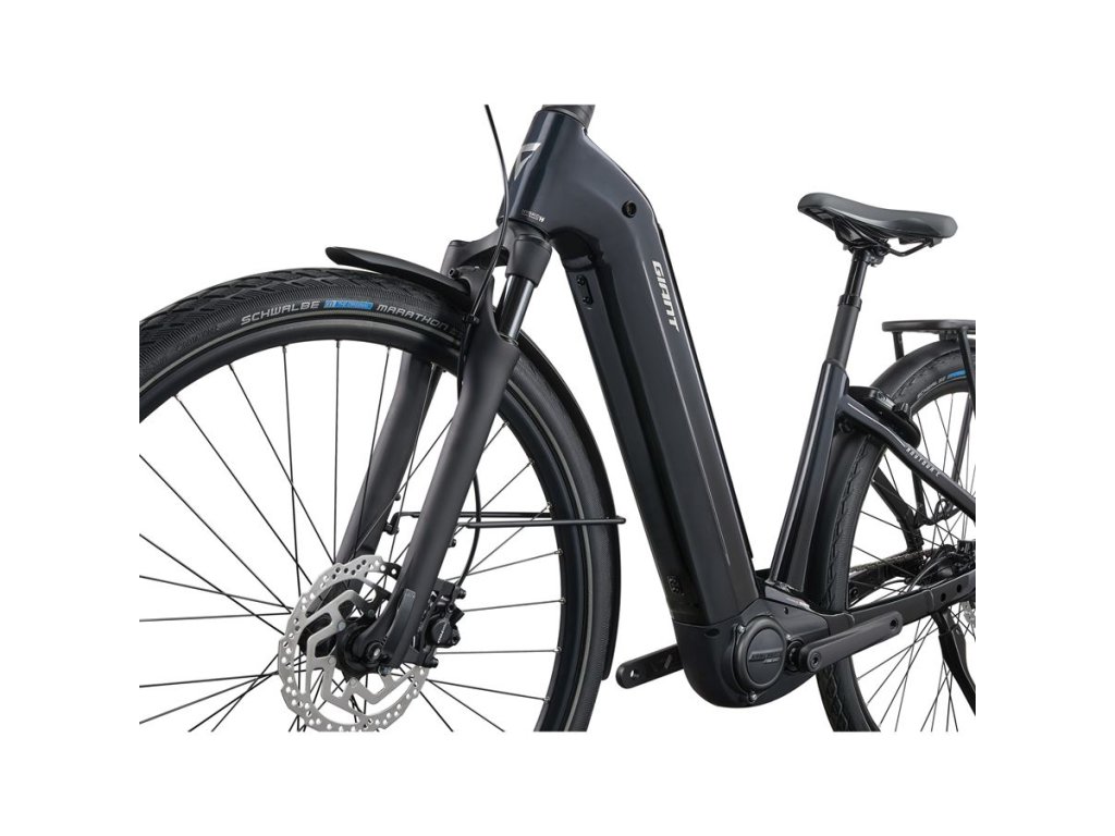 -- Výstavní vzorkové kolo, které lze po dohodě prohlédnout v prodejně Progress Cycle Hostivice. -- -- Na kolo se nevztahuje doživotní záruka na rám a osazení se může lišit od uvedené specifikace. -- Specifikace Hybridní technologie Motor Giant SyncDrive Core, 55Nm, Powered by Yamaha, PedalPlus 6-sensor technology Ovládací jednotka Giant RideControl Ergo 2 remote, Smart Assist automatic mode, 5 support levels, USB-C (10W) Displej Giant RideDash EVO, high-angle visibility, 3" full color LCD display, on-board navigation Baterie Giant EnergyPak 500Wh, Aluminium casing with highest safety standard (EN50604), CO2 Neutral production Rám Velikost M Barva Black Rám New ALUXX aluminum for Core motor with integrated cable routing Vidlice SR Suntour NEX E25 700C Coil 63mm travel Komponenty Řídítka Giant Contour GT, cable integrated, 30° back sweep, 31.8x660 mm Gripy Giant Comfort Ergo Microtech Plus Lock-on Představec Giant Contour, EVO display integrated, adjustable Sedlovka Suspension 2-bolt micro-adjustable, 30.9mm Sedlo Selle Royal Look-In gel Pedály Aluminum, Wellgo C211DU, PP body, anti-slip Osazení Řazení Shimano Nexus 7speed Revoshift Brzdy Tektro HD-M275, hydraulic disc, 180mm [F], 160mm [R] Brzdové páky Tektro HD-M275 Kazeta 18T Řetěz KMC Z1e HX, e-bike optimized Kliky Aluminum, 38T Kola Ráfky Giant Double Wall Aluminum 622x21 Náboje Shimano HB-MT200 9mm QR Disc [F], Shimano Nexus 7 Coaster Disc brake [R] Dráty Stainless Pláště Schwalbe Marathon 622x50 Green Guard Příslušenství Světlo Giant Recon HL50, 50 lux [F]AXA Juno 6-12V E-bike tail light [R] Zámek ABUS Xplus Battery Lock / Abus 5755L XPUS NR Nosič MIK rack. System bag and basket compatibleDoplňkové parametry
