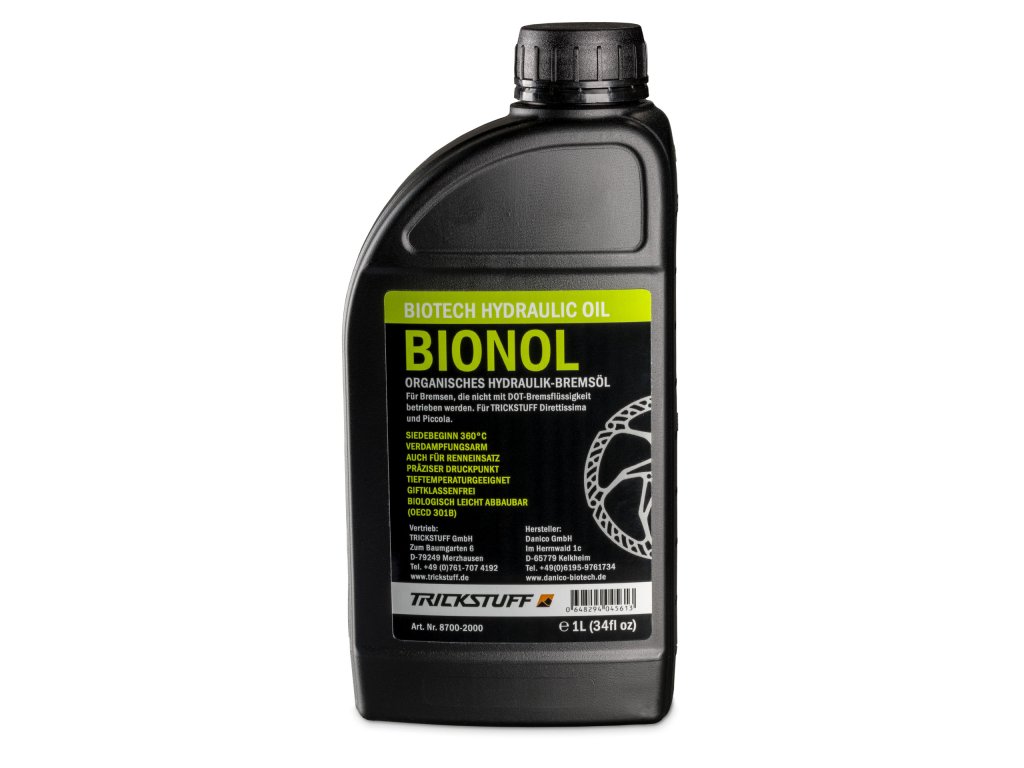 Brzdová kapalina používaná v brzdách Trickstuff je Bionol, která je vyrobena z rostlinného oleje a je tak šetrná k životnímu prostředí.