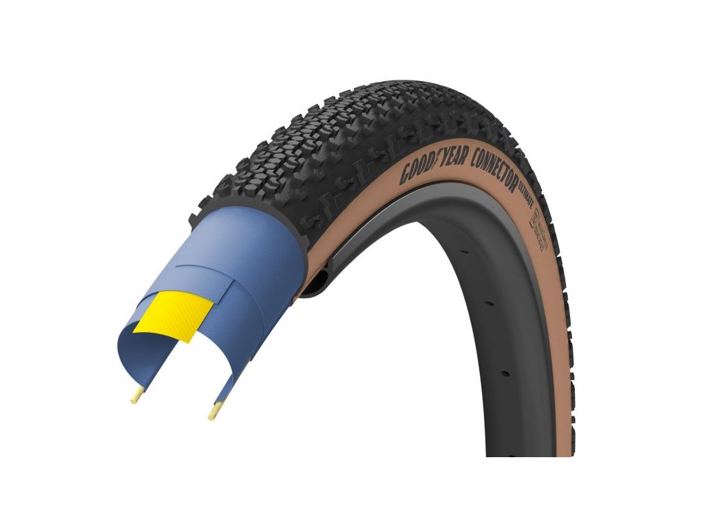 Connector si poradí s každým terénem, od dobrodružství na šotolině až po drcení v terénu. Všestranný dezén s hustě rozmístěnými středovými hrbolky v kombinaci s agresivními bočními hrbolky je spojen s naší konstrukcí Tubeless Complete. Výsledkem je rychle se odvalující, vysoce trakční, univerzální plášť připravený na vše od backroadu po singletrack. Dynamic: Silica4 - tato směs je vyvinuta tak, aby minimalizovala valivý odpor a zároveň zlepšila přilnavost za mokra. 120 TPI. Skládání. Tubeless Complete™ (Off-Road) - patentovaná konstrukce pneumatik Goodyear Bicycle Tires, která se vyznačuje všemi výhodami pneumatik Tubeless Ready (TLR), ale zároveň lépe udrží tlak v pneumatikách než tradiční TLR. R:Shield je přerušovací pás, který se nachází pod běhounem a poskytuje další vrstvu, která zlepšuje ochranu proti propíchnutí při zachování optimálních vlastností valivého odporu.