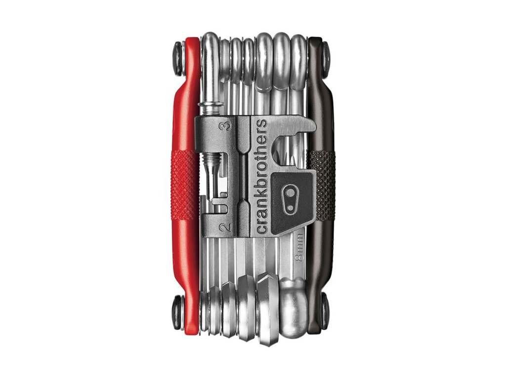 Lehké 19funkční nářadí s obalem z nerezové oceli. váha: 175 g délka: 89 mm materiál: dural 6061 t6 nářadí: vysokopevnostní ocel nýtovač: pro 8/9/10/11/12 rychlostní řetězy centrovací klíč: #0, #1, #2 a #3 inbusy: 2 / 2,5 / 3 / 4 / 5 / 6 / 8 mm šroubováky: 2x křížový a 1x plochý torx klíč: T25 obal: nerezová ocel a polymer, 40 gDoplňkové parametry