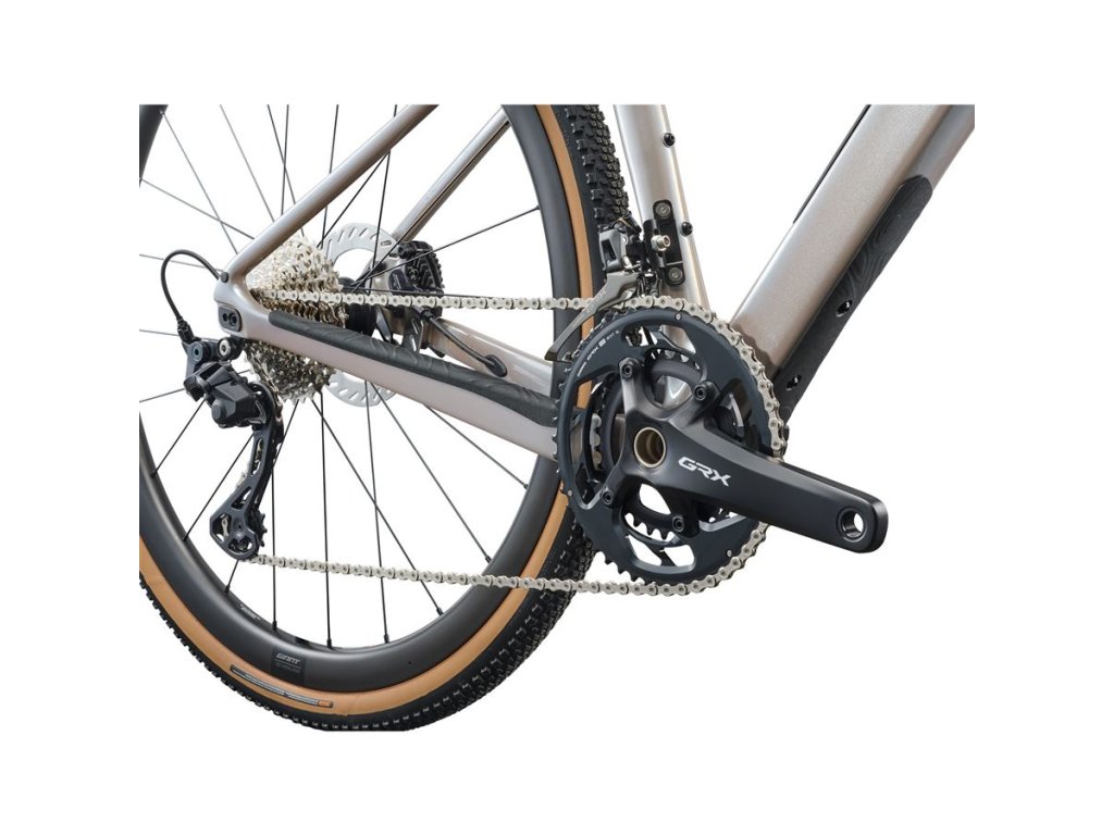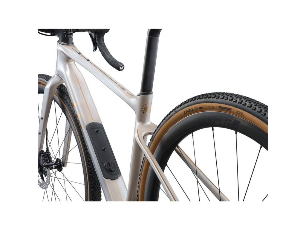 Pro ženy, které mají rády rychlou a ničím neomezenou jízdu na šotolině, je určen tento lehký karbonový gravel bike. Devote Advanced vám umožní zvolit si svůj cíl: připněte si na kolo startovní číslo a vyrazte za vítězstvím, nebo si naplánujte víkendové dobrodružství a zjistěte, kam až můžete dojet. Díky špičkovému karbonovému rámu, nastavitelnému rozvoru a vnitřnímu úložnému prostoru pro přepravu nezbytných věcí je Devote Advanced připraven na všechno. Hlavní přednosti Ultralehký rám s úložným prostorem Karbonový rám z materiálu Advanced Composite umožňuje svižné zrychlení, zatímco vnitřní vedení brzdových hadic a bowdenů zjednodušuje kokpit a vytváří prostor pro potřebné doplňky. Moderní geometrie rámu přináší agresivnější jízdní pozici, zlepšuje trakci a stabilitu a poskytuje více jistoty ve sjezdech a vyšších rychlostech. Snadno přístupný úložný prostor, chytře integrovaný ve spodní rámové trubce, umožní bezpečně přepravovat nářadí, výživu a další nezbytnosti. Vynikající pohodlí a ovládání Níže umístěné sedlové vzpěry menšího průměru zlepšují pohlcování nárazů a vibrací. K vyššímu komfortu a tím i snížení únavy na dlouhých a nerovných trasách pomáhají také komponenty D-Fuse – sedlovka pod zátěží mírně pruží a na stejném principu jsou založena i řídítka, ovšem bez snížení tuhosti při zatáčení, stoupání nebo jízdě ze sedla (pozn.: model Devote Advanced 1 má z výroby sedlovku teleskopickou). Pro pohodlný a ergonomický úchop jsou řídítka ve spodním úchopu rozšířená. Bezkonkurenční univerzálnost Díky dvoupolohovému systému flip chip, který je umístěný v zadních patkách, můžete měnit rozvor kol. Kratší rozvor přináší citlivější ovládání a větší „hbitost“ kola. Delší rozvor zlepšuje stabilitu ve vyšších rychlostech a trakci a současně také zvětšuje prostor pro zadní plášť (až na šíři 53 mm). Rám také umožňuje volbu typu sedlovky – lze použít buď sedlovku Giant D-Fuse pro vyšší pohodlí nebo standardní kulatou (tedy i teleskopickou) sedlovka o průměru 30,9 nebo 27,2 mm. SPECIFIKACE RÁM VELIKOST M BARVA Camel Silk/Chrome RÁM Advanced-grade composite, 12x142mm thru-axle, flat mount disc, flip chip – dropout, integrated down tube storage VIDLICE Advanced-grade composite, full-composite OverDrive steerer, 12mm thru-axle, flat mount disc, FSA stainless upper/lower bearings KOMPONENTY ŘÍDÍTKA Giant Contact XR D-Fuse, 31.8mm, 5-degree back sweep, flare drop, XS: 400mm, S: 400mm, M: 420mm, L: 420mm GRIPY Liv All Condition PŘEDSTAVEC Giant Contact AeroLight, -10-degree, XS: 50mm, S: 60mm, M: 70mm, L:80mm SEDLOVKA Giant D-Fuse, composite, -5/+15mm offset SEDLO Liv Grit OSAZENÍ ŘAZENÍ Shimano GRX RX-820, 2x12 PŘESMYKAČ Shimano GRX RX-820 PŘEHAZOVAČKA Shimano GRX RX-820 BRZDY Shimano GRX RX-820 hydraulic, Shimano RT-70 rotors, [F]160mm, [R]160mm BRZDOVÉ PÁKY Shimano GRX RX-820 hydraulic KAZETA Shimano CS-HG710, 12-speed, 11x36 ŘETĚZ KMC X12L-1 KLIKY Shimano GRX RX-820, 31/48, XS: 165mm, S: 170mm, M: 172.5mm, L:172.5mm STŘED Shimano, press fit KOLA RÁFKY Giant CXR 2, [F] 35mm, [R] 35mm NÁBOJE [F] Giant alloy, CenterLock, 12mm thru-axle, [R] Giant AR alloy, 3-pawl driver, 36t, CenterLock, 12mm thru-axle DRÁTY Sapim Sprint PLÁŠTĚ CADEX GX, 700x40c, tubeless DOPLŇKY 53mm max tire size in "long" flip chip position, 45mm max tire size in "short" flip chip position, tubeless prepared, ISC clamp, in-frame storage bag OMEZENÍ MAXIMÁLNÍ ŠÍŘKA PLÁŠTĚ 53 mmDoplňkové parametry