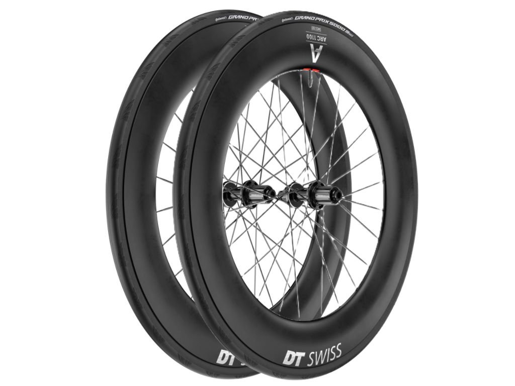 Nová řada Aero kol DT SWISS ARC přináší spoustu novinek, které tyto kola posunují další krok kupředu. Vyšší profily ráfků v podobě 55 / 65 a 85mm dodávají lepší setrvačnost v rychlostech, širší 22mm vnitřní šíře ráfků zlepšují přilnavost a dokonce ještě i snižují valivý odpor. Aby bylo zaručeno i nízké váhy, přední kola byly zapleteny jen na 20 paprsků, což stále umožnuje vysokou tuhost do spurtů. Tato řada kol je zaměřena na co nejrychlejší jízdní parametry a za tímto účelem je optimalizován každý detail a komponent - náboje řady DT 180 EXP, paprsky Aerolite II...