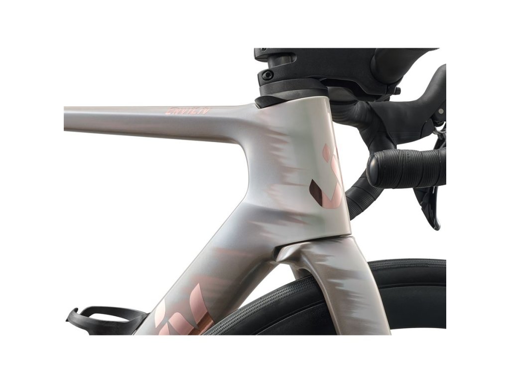 Od úniku v etapovém závodě až po závěrečné kolo kritéria – nejnovější generace modelu EnviLiv byla navržena pro pozici na čele pelotonu. Přepracovali jsme náš typicky sprinterský model, abychom dosáhli optimalizovaného aerodynamického výkonu, lepšího poměru tuhosti a hmotnosti a maximálního počtu vítězství. Hlavní přednosti Optimalizovaná aerodynamika V naší snaze o maximální výkon a efektivitu analyzujeme, jak kolo a jezdec prožívají proudění vzduchu při každé rychlosti a směru, a to jak na počítači, tak v aerodynamickém tunelu. Model EnviLiv se vyznačuje speciálním profilem rámových trubek, které mají tvar zkrácené elipsy. Zmínit je třeba také kokpit Contact SL Aero se zploštělými vršky a hlubšími oblouky, což přináší nejen snížení odporu vzduchu pro celkově lepší aero výkon, ale také lepší ovladatelnost. Účinnost ve sprintu Aerodynamiku ovlivňuje mnoho faktorů, z nichž dva se často vzájemně vylučují: tuhost a hmotnost. Model EnviLiv ale našel ideální rovnováhu díky karbonovému rámu a vidlici z materiálu Advanced Composite, což se příznivě projevilo na hmotnosti – oproti předchozí generaci modelu EnviLiv Advanced se nám podařilo dosáhnout úspory 292 gramů. Dokonalá integrace Když záleží na každé vteřině, záleží i na každém detailu. Vedení kabelů přes řídítka, představec a rám zlepšuje aerodynamický výkon a také usnadňuje rozebrání kola kvůli cestování nebo údržbě. Dva aerodynamické košíky na láhev na vodu se dokonale integrují se sedlovou trubkou a spodní rámovou trubkou a dále snižují odpor vzduchu. SPECIFIKACE RÁM VELIKOST M BARVA Camel Silk/Chrome RÁM Advanced-grade composite, 12x142mm thru-axle, disc VIDLICE Advanced-grade composite, full-composite OverDrive Aero steerer, 12x100mm, disc KOMPONENTY ŘÍDÍTKA Liv Contact SL Aero, 31.8mm, XXS: 360mm, XS: 360mm, S: 380mm, M: 400mm, L: 420mm GRIPY Liv Stratus Elite 2.0 PŘEDSTAVEC Giant Contact SL Aero, XXS:80mm, XS:80mm, S:90mm, M:100mm, L:110mm SEDLOVKA Giant Vector, composite, XXS: 350mm, XS: 350mm, S: 350mm, M: 350mm, L: 350mm SEDLO Liv Alacra SL OSAZENÍ ŘAZENÍ Shimano 105 PŘESMYKAČ Shimano 105 PŘEHAZOVAČKA Shimano 105 BRZDY Shimano 105 hydraulic, Shimano SM-RT64 [F]160mm, [R]140mm BRZDOVÉ PÁKY Shimano 105 hydraulic KAZETA Shimano 105, 12-speed, 11x34 ŘETĚZ KMC X12L-1 KLIKY Shimano 105, 36/52, XXS:160mm, XS:165mm, S:165mm, M:170mm, L:172.5mm STŘED Shimano, press fit KOLA RÁFKY Giant P-A2 Disc, alloy NÁBOJE Giant P-A1 Disc, 12mm thru-axle DRÁTY Sapim PLÁŠTĚ Giant Gavia Course 0, 700x28c, folding, tubeless DOPLŇKY computer mount, two bottle cages, tubeless prepared, 32mm max tire size OMEZENÍ MAXIMÁLNÍ ŠÍŘKA PLÁŠTĚ 32mmDoplňkové parametry
