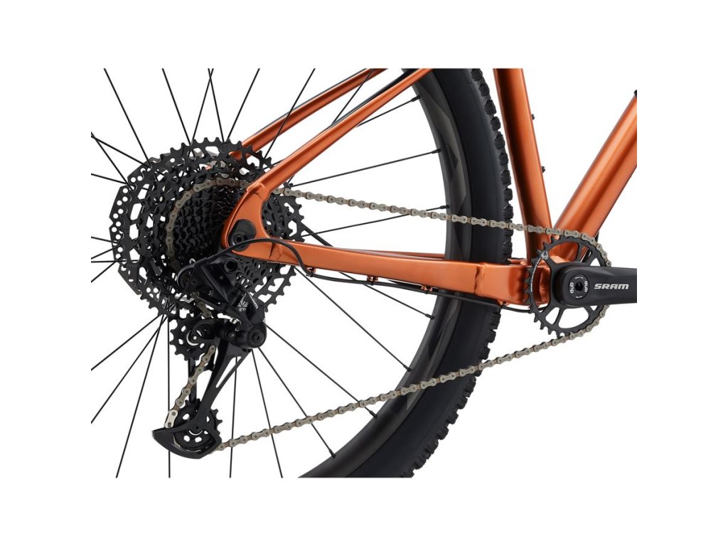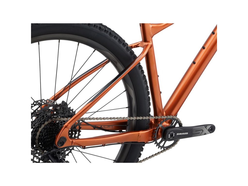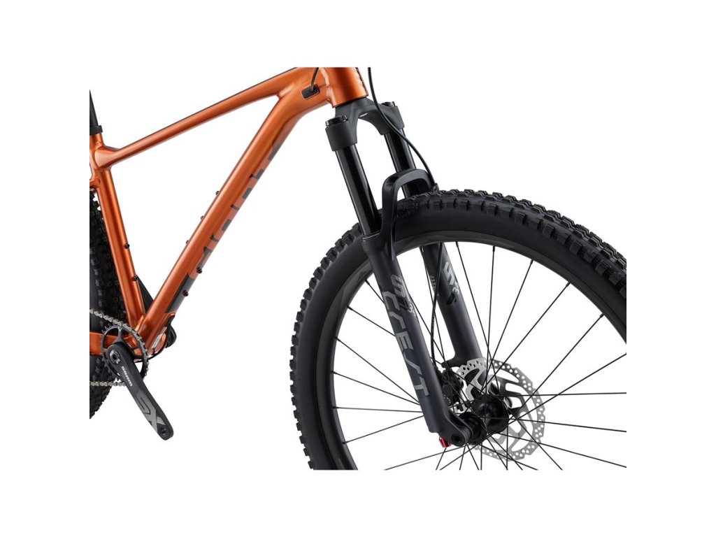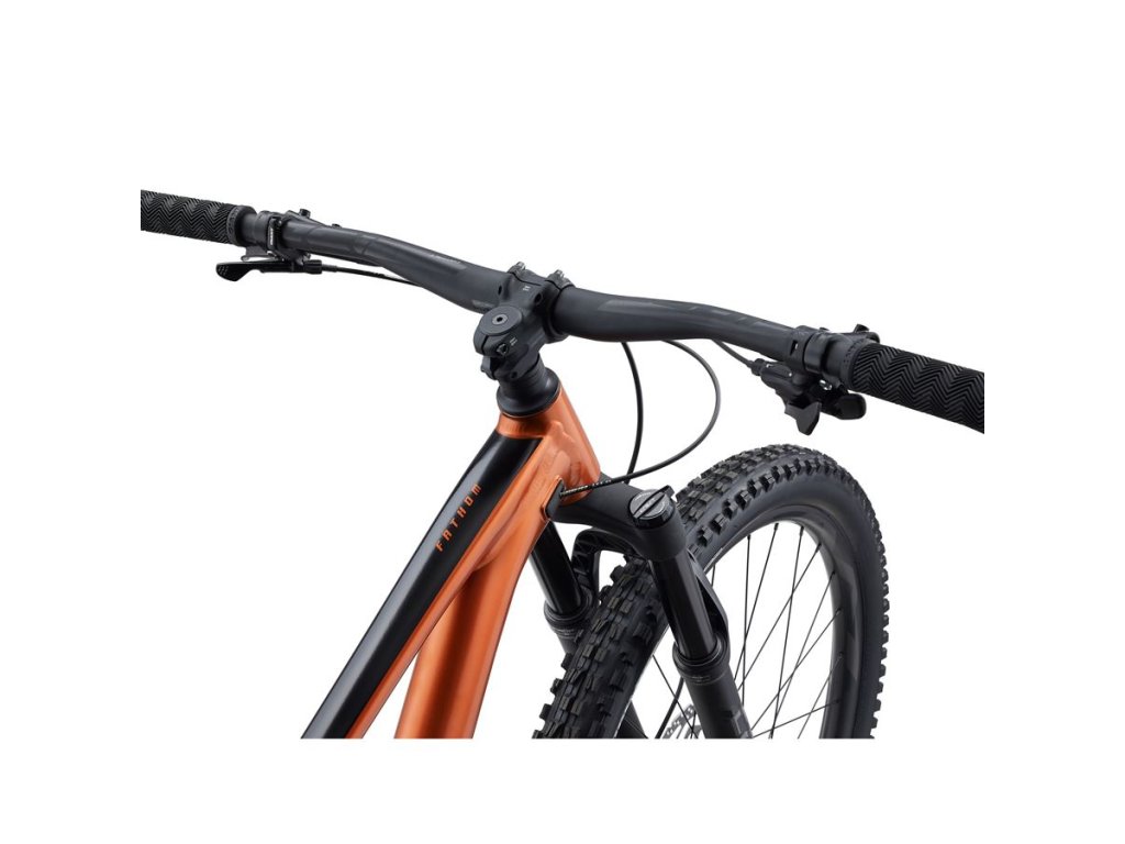 FATHOM 29 NABÍZÍ MODERNÍ TRAILOVOU GEOMETRII, KVALITNÍ VIDLICI SE ZDVIHEM 130 MM A CHYBĚT NESMÍ ANI TELESKOPICKÁ SEDLOVKA. JEDNÁ SE TEDY O 29“ TRAIL BIKE URČENÝ HLAVNĚ NA TRAILY A SINGLETRACKY A DO TĚŽŠÍHO TERÉNU – ZKRÁTKA KOLO, SE KTERÝM SI UŽIJETE SPOUSTU ZÁBAVY I BEZ ZADNÍHO ODPRUŽENÍ! HLAVNÍ PŘEDNOSTI Hliníkový rám ALUXX SL Lehký a zároveň velmi tuhý a pevný hliníkový rám je vyráběn v naší vlastní továrně z naší vysoce kvalitní slitiny ALUXX SL. Jeho zajímavostí je design řetězové vzpěry, který umožňuje kratší rozměr zadní stavby (435 mm) pro lepší ovladatelnost kola a zároveň se zvětšil prostor pro zadní plášť (až do rozměru 2,5“). Moderní trailová geometrie Fathom 29 má z hlediska geometrie vysloveně „trailové“ parametry, aby jízda byla opravdu zábavná. Odpovídá tomu například více položená vidlice (hlavový úhel 66°), což se projeví lepší ovladatelností na trailech, ve sjezdech i technických pasážích. Naopak ve stoupáních oceníte sedlový úhel 75°, který vás dostává do té správné pozice, abyste i prudké výjezdy zvládli snadno a efektivně. Jistota v terénu Vzduchová odpružená vidlice Giant Crest 34 RCL se zdvihem 130 mm bude citlivě „žehlit“ veškeré nerovnosti, což vám také dodá větší jistotu při jízdě v terénu. Oba nabízené modely jsou vybaveny také teleskopickou sedlovkou, konkrétně jde o naší vlastní sedlovku Giant Contact Switch s vnitřním vedení bowdenu. Teleskopická sedlovka vám dodá více jistoty především ve sjezdech, kde jízda se sedlem nízko bude zábavnější i bezpečnější. Velikost S Barva Amber Glow Rám ALUXX SL-Grade Aluminum Vidlice Giant Crest 34 SL RCL, 130mm, 44mm offset, Boost 15x110 Řídítka Giant Contact TR35, 780x35mm Gripy Giant Sole-O Představec Giant Contact SL 35 S:40mm, M:40mm, L:50mm, XL:50mm Sedlovka Giant Contact Switch dropper, remote S: 125mm travel / 30.9 x 395mm M: 125mm travel / 30.9 x 395mm L: 150mm travel / 30.9 x 440mm XL: 170mm travel / 30.9 x 450mm Sedlo Giant Romero Řazení SRAM SX Eagle, 1x12 Přehazovačka SRAM NX Eagle Brzdy Shimano BR-MT420/410, hydraulic, Shimano RT-26 rotors [F]180mm, [R]180mm Brzdové páky Shimano BR-MT401 Kazeta SRAM SX Eagle, 11x50 Řetěz SRAM SX Eagle Kliky SRAM SX Eagle, 30t S:165mm, M:170mm, L:170mm, XL:170mm Středové složení SRAM DUB, press fit Ráfky Giant AM 29, tubeless ready sleeve-joint rim, 30mm inner width Náboje alloy, sealed Dráty stainless Pláště [F] Maxxis Minion DHF, 29x2.5 WT, EXO/TR[R] Maxxis Aggressor, 29x2.5 WT, foldable, EXO/T Doplňky tubeless prepared, 2.5" max tire size, 32t max chainring size