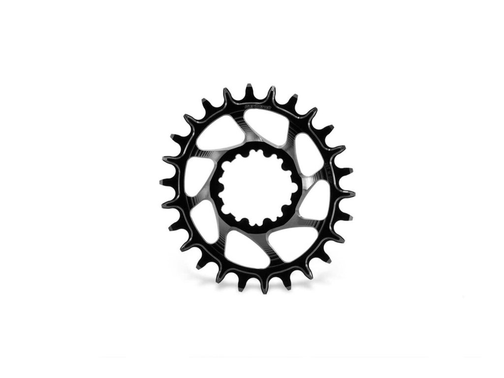 MTB převodník pro 1x systémy. Tvar a výška zubů bezpečně drží řetěz na převodníku v divočejším terénu. Tvarování a přesná šířka zubů se starají těsnější kontakt převodníku s řetězem a hladší spolupráci s řetězem při šlapání. Zkosené hrany zubů zabraňují temování nečistot a udržují systém čistší.