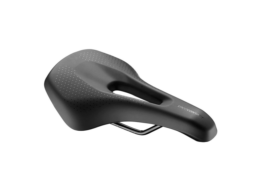 Vysoce pohodlné sedlo ErgoContact zlepšuje podporu sedacích kostí, snižuje tlak na měkké tkáně v klíčových kontaktních bodech a nabízí větší volnost pohybu, což jsou vlastnosti, které oceníte jak na kratších, tak především na delších vyjížďkách. VLASTNOSTI komfortní sedlo určené především pro rekreační cyklistiku sedlo je speciálně navržené pro vzpřímenější držení těla při jízdě dovnitř směřující boční křivky poskytují více prostoru pro efektivní šlapání pečlivě promyšlený kontaktní úhel pomáhá zmírnit tlak na měkké tkáně sedacích partií a eliminuje znecitlivění nebo bolest středový kanálek spolu s velkým centrálním výřezem mají za úkol co nejvíce snižovat nežádoucí tlak na sedací partie vnitřní výplň poskytuje značnou elasticitu pro dlouhotrvající podporu konstrukce s krátkou přední částí poskytuje zvýšenou efektivitu šlapání a všestranný komfort pro různé jízdní pozice základna z pevného plastu ocelové ližiny o průměru 7 mm komfortní potah odolný proti prodření barevné provedení: černá SPECIFIKACE Rozměryšířka 150 mm, délka 260 mm, výška 53 mm Hmotnost335 gDoplňkové parametry