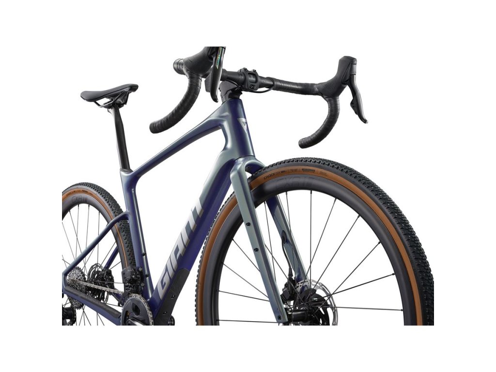 GRAVEL CRUSHER Pro ty, kteří mají rádi rychlou a ničím neomezenou jízdu na šotolině, je určen tento lehký karbonový gravel bike. Nový Revolt Advanced Pro vám umožní zvolit si svůj cíl: připněte si na kolo startovní číslo a vyrazte za vítězstvím, nebo si naplánujte víkendové dobrodružství a zjistěte, kam až můžete dojet. Díky špičkovému karbonovému rámu, nastavitelnému rozvoru a vnitřnímu úložnému prostoru pro přepravu nezbytných věcí je Revolt Advanced Pro připraven na všechno. Hlavní přednosti RYCHLÝ A VŠESTRANNÝ Karbonový rám Advanced Composite a vidlice Advanced SL Composite společně přinášejí nízkou hmotnost, vysokou efektivitu a perfektní ovladatelnost. Dvoupolohový systém flip chip umístěný v zadních patkách umožňuje nastavit rozvor: krátký pro rychlejší ovládání nebo dlouhý pro větší prostor pro pláště (až 53 mm) a větší stabilitu. Rám také umožňuje volbu typu sedlovky, takže se dá použít buď sedlovka Giant D-Fuse pro vyšší pohodlí nebo standardní kulatá (tedy i teleskopická) sedlovka 30,9 mm. VYSOKÝ KOMFORT Rám má níže umístěné sedlové vzpěry menšího průměru pro ještě lepší pohlcování nárazů a vibrací. K vyššímu komfortu a tím i snížení únavy na hrubých cestách nebo na dlouhých vzdálenostech pomáhá také karbonová sedlovka D-Fuse SLR a karbonová řídítka Contact SLR XR D-Fuse – obojí společně funguje jako systém a pod zátěží mírně pruží, ovšem bez snížení tuhosti při zatáčení, stoupání nebo jízdě ze sedla. CHYTRÁ INTEGRACE Vnitřně vedené kabely nabízejí čistý a estetický vzhled kokpitu a lepší aerodynamický výkon. Snadno přístupný úložný prostor ve spodní rámové trubce vám umožní bezpečně přepravovat nářadí, výživu a další nezbytnosti. Další integrované úchyty na horní rámové trubce, vidlici a zadní stavbě usnadňují případnou instalaci brašen či blatníků. Zcela nová a speciálně tvarovaná ochrana rámu (pod řetězem a na spodní trubce) pomáhá chránit rám před nárazy a také tlumí hluk. SPECIFIKACE RÁM VELIKOST M/L BARVA Interstellar/Chrome RÁM Advanced-grade composite, 12x142mm thru-axle, disc, flip chip dropout, down tube storage VIDLICE Advanced SL-grade composite, full-composite OverDrive steerer, 12mm thru-axle, disc KOMPONENTY ŘÍDÍTKA Giant Contact SLR XR D-Fuse, 31.8mm XS:42cm, S:42cm, M:44cm, M/L:44cm, L:46cm, XL:46cm GRIPY Stratus Lite 3.0 PŘEDSTAVEC Giant Contact AeroLight, -10 degree XS:50mm, S:60mm, M:70mm, M/L:80mm, L:80mm, XL:90mm SEDLOVKA Giant D-Fuse SLR, composite, -5/+15mm offset SEDLO Giant Grit SL OSAZENÍ ŘAZENÍ SRAM Force eTap AXS, 2x12 PŘESMYKAČ SRAM Force eTap AXS PŘEHAZOVAČKA SRAM Force eTap AXS BRZDY SRAM Force eTap AXS hydraulic, SRAM CenterLine rotors [F]160mm, [R]160mm BRZDOVÉ PÁKY SRAM Force eTap AXS hydraulic KAZETA SRAM Force, 12-speed, 10x36 ŘETĚZ SRAM Force D1 KLIKY SRAM Force D2 DUB, 30/43 XS:170mm, S:170mm, M:172.5mm, M/L:172.5mm, L:175mm, XL:175mm STŘED SRAM DUB, press fit KOLA RÁFKY Giant CXR 1 Carbon Disc WheelSystem, [F] 35mm, [R] 35mm NÁBOJE [F] Giant AR alloy, CenterLock, 12mm thru-axle [R] Giant AR alloy, DT350 36t ratchet driver, CenterLock, 12mm thru-axle DRÁTY Sapim CX-Ray PLÁŠTĚ CADEX GX, 700x40c, tubeless DOPLŇKY tubeless prepared, 53mm max tire size in "long" flip chip position, 45mm max tire size in "short" flip chip position, in-frame storage bagDoplňkové parametry