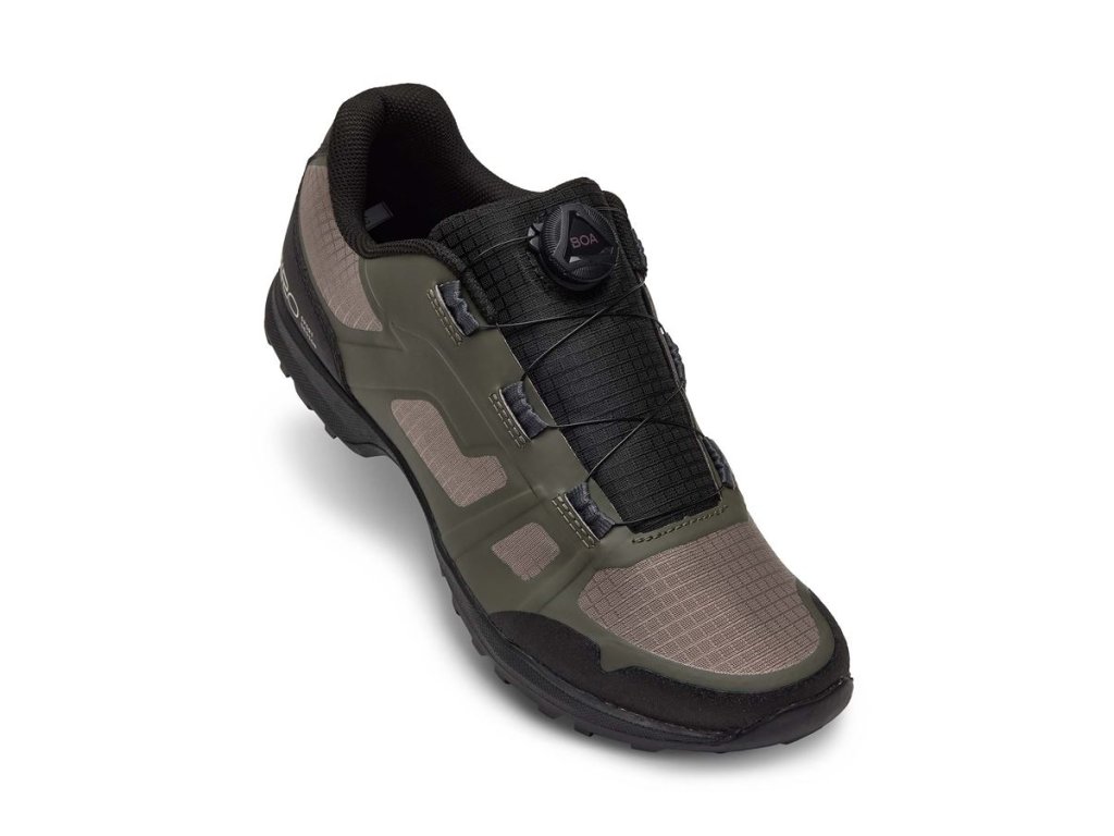 Boty Gauge BOA přinášejí do cyklistiky pocit pohodlí, který znáte z běžecké obuvi. Jsou vhodné k jízdě na kole (kompatibilita s nášlapnými i standardními pedály) i k chůzi – perfektně se tedy hodí na cykloturistiku. Agresivní vzorek potažený protiskluznou gumou vás dokonale podrží při chůzi v terénu i městském prostředí. Svršek je vyroben ze syntetického vlákna a síťovaných panelů pro dokonalé odvětrání. SVRŠEK lehké, prodyšné a odolné mikrovlákno, ochrana proti prodření na patě a špičce, BOA zapínání PODRÁŽKA gumová podrážka, agresivní vzorek VLOŽKA EVA HMOTNOST 406 g