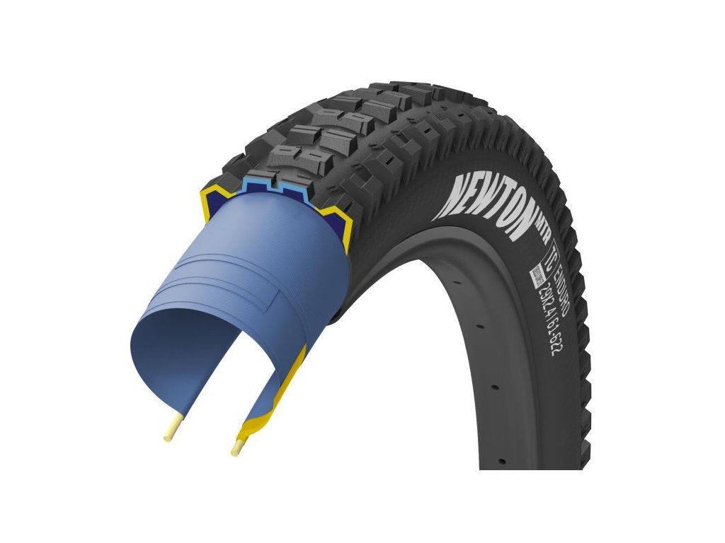 Newton MTR (Mountain Rear), součást našeho ultimativního balíčku plášťů vyvinutého pro gravity jízdu a závody. Pneumatika, která nejlépe zvedá zadek při sprintu ze startovní chaty závodní jízdy, při útoku na volné úseky bez náklonu, při držení stopy na kamenitých výjezdech a při sjíždění skalních úseků. Dynamic:Trail2 - Naše duální směs 50/60a, která je specifická pro traily a je speciálně vyvinuta pro vyvážení přilnavosti, opotřebení a účinnosti. 1x60 TPI. Bezdušová patka. Tubeless Complete™ (Off-Road) - patentovaná konstrukce pneumatik Goodyear Bicycle Tires, která se vyznačuje všemi výhodami pneumatik Tubeless Ready (TLR), ale zároveň lépe udrží tlak v pneumatikách než tradiční TLR. Armor - vrstva pláště chránící od patky k patce proti proříznutí a propíchnutí.Doplňkové parametry