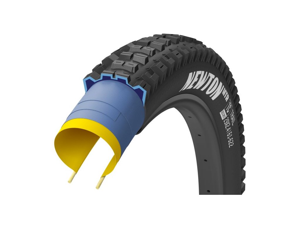 Newton MTR (Mountain Rear), součást našeho ultimativního balíčku plášťů vyvinutého pro gravity jízdu a závody. Pneumatika, která nejlépe zvedá zadek při sprintu ze startovní chaty závodní jízdy, při útoku na volné úseky bez náklonu, při držení stopy na kamenitých výjezdech a při sjíždění skalních úseků. Dynamic:Trail2 - Naše duální směs 50/60a, která je specifická pro traily a je speciálně vyvinuta pro vyvážení přilnavosti, opotřebení a účinnosti. 1x60 TPI. Bezdušová patka. Tubeless Complete™ (Off-Road) - patentovaná konstrukce pneumatik Goodyear Bicycle Tires, která se vyznačuje všemi výhodami pneumatik Tubeless Ready (TLR), ale zároveň lépe udrží tlak v pneumatikách než tradiční TLR. Armor - vrstva pláště chránící od patky k patce proti proříznutí a propíchnutí.Doplňkové parametry