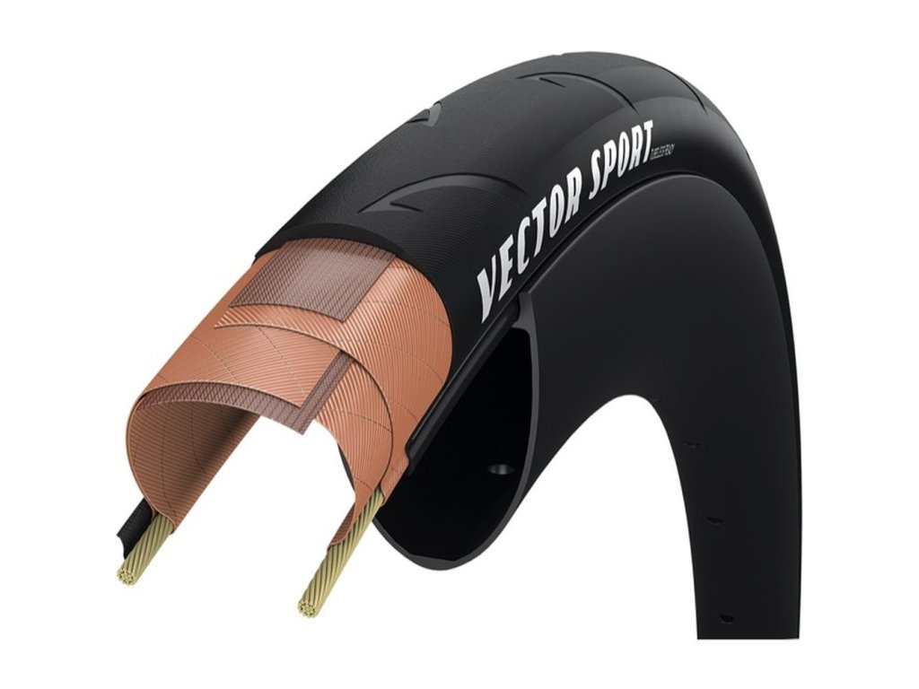 Díky víceúrovňové odolnosti se zvýšenou ochranou proti propíchnutí je vysoce výkonná pneumatika Vector Sport spolehlivou volbou pro vytrvalostní silniční použití. Díky dvojitému pásu R:Shield proti propíchnutí a robustní jednovrstvé kostře 60TPI spolu s možnostmi bezdušové a dušové varianty je Vector Sport ideální volbou pro jezdce, kteří chtějí ujet větší vzdálenost. Dynamic:HP - Směs zlepšující odolnost proti průrazu při zachování spolehlivé přilnavosti a nízkého valivého odporu. 60 TPI. Skládání. Plášť typu clincher, který je funkční bez duše, ale vyžaduje těsnicí hmotu pro udržení tlaku v pneumatikách podle definice ISO 4223-1. Pneumatika připravená pro bezdušový provoz využívá k utěsnění pláště vůči ráfku patku pokrytou butylem. Obvykle je ráfek utěsněn pomocí neporézní pásky, zatímco plášť pneumatiky vyžaduje použití těsnicí hmoty k zajištění udržení vzduchu. R:Shield je přerušovací pás, který se nachází pod běhounem a poskytuje další vrstvu pro zlepšení ochrany proti propíchnutí při zachování optimálních vlastností valivého odporu.Doplňkové parametry