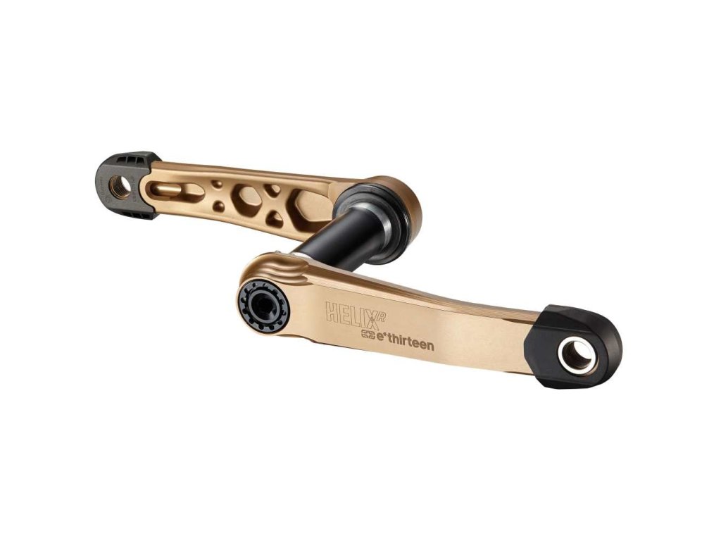 Hliníkové kliky Helix Race jsou špičková hliníková kliková sada, která přináší sílu Enduro při hmotnosti Down Country, která začíná na pouhých 556 g. Rozsáhlá optimalizace hmotnosti, téměř každý viditelný povrch klik je CNC obráběn z robustního kovaného polotovaru. Konstrukce využívá modulární systém vřetena karbonových klik e*thirteen se slitinovými rameny, která dosahují maximálního poměru pevnosti k hmotnosti. Dodávají se s lisovanými manžetami klik pro větší odolnost proti nárazu, systémem slitinových vytahovacích šroubů a nastavovačem APS. Jsou kompatibilní s převodníky Helix flip-flop a lze je přizpůsobit jak převodníkům Boost, tak i Super Boost.