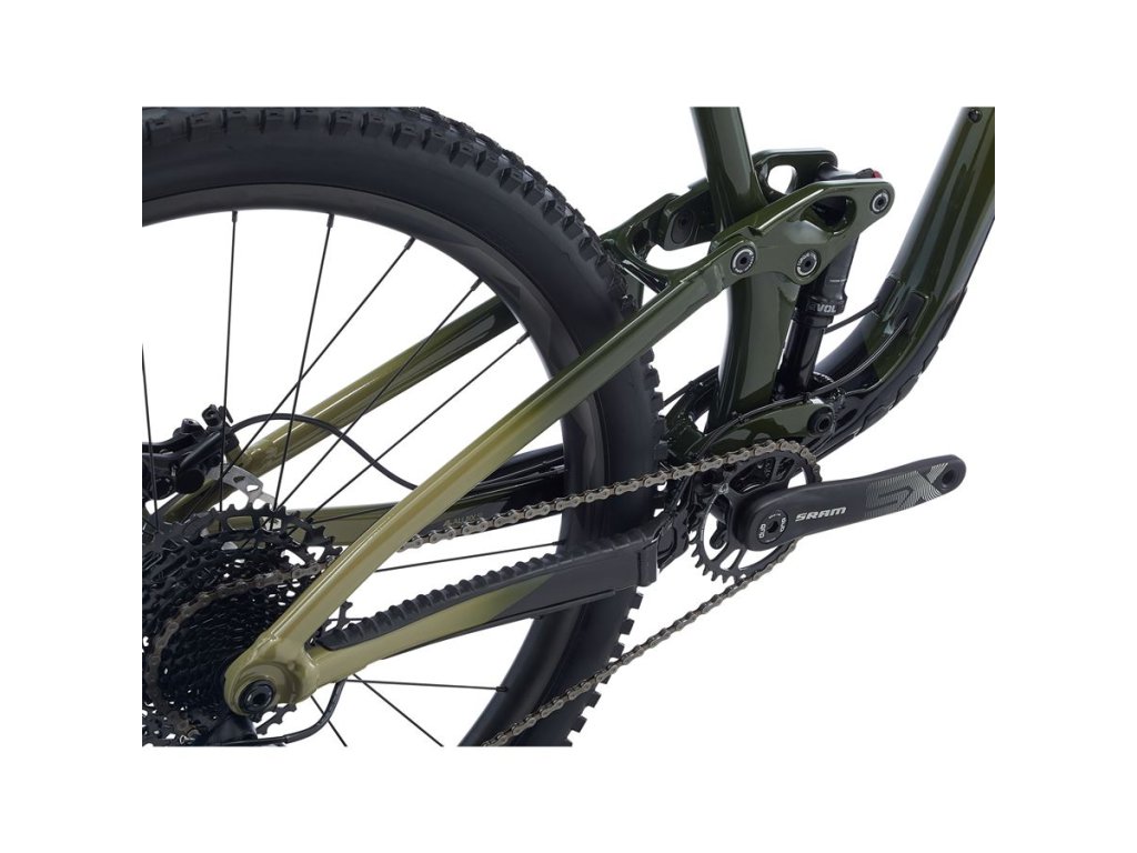 CELOODPRUŽENÝ TRAIL BIKE INTRIGUE 29 JE NABÍZEN TAKÉ V CENOVĚ DOSTUPNĚJŠÍM HLINÍKOVÉM PROVEDENÍ. STEJNĚ JAKO KARBONOVÁ VARIANTA DISPONUJE ZDVIHY 140/125 MM A MÁ NASTAVITELNOU GEOMETRII. INTRIGUE 29 JE URČEN NEJEN PRO TY BIKERKY, KTERÉ TU NEJTĚŽŠÍ ČÁST TRAILU POVAŽUJÍ ZA SVOU OBLÍBENOU PASÁŽ, ALE I PRO TY MÉNĚ ZKUŠENÉ, KTERÝM POMŮŽE ZDOKONALIT TECHNIKU JÍZDY V NÁROČNĚJŠÍM TERÉNU. HLAVNÍ PŘEDNOSTI Hliníkový rám ALUXX SL a karbonové vahadlo Intrigue 29 je postaven na hliníkovém rámu z naší vysoce kvalitní slitiny ALUXX SL, díky které je rám je velmi lehký, ale také dostatečně tuhý a pevný. Samozřejmostí je vnitřní vedení bowdenů a nechybí ani ochrana rámu v nejvíce exponovaných místech, tedy na spodní trubce a zadní stavbě u řetězu. Horní vahadlo odpružení je pro vyšší tuhost i pevnost a zároveň nižší hmotnost vyrobeno z karbonu. Skvělé odpružení Maestro Zadní odpružení Maestro poskytuje zdvih 125 mm a vpředu s ním perfektně spolupracuje vidlice se zdvihem 140 mm. Systém Maestro funguje na principu virtuálního (plovoucího) středu otáčení zadní stavby, odpružení je díky tomu plně aktivní a vysoce citlivé. Zároveň je eliminováno nežádoucí pohupování při šlapání, takže neztrácíte energii a jedete plynuleji, rychleji a s menší námahou. Nastavitelná geometrie Díky tzv. flip chip vložkám umístěným v horním vahadle odpružení si můžete snadno upravit geometrii kola tak, aby co nejlépe vyhovovala vašemu stylu jízdy nebo terénu, v jakém nejčastěji jezdíte – k dispozici jsou dvě polohy. Pro rychlý „agresivní“ terén je ideální nastavení do polohy Low (vidlice je více položená), nastavení do polohy High vytváří spíše XC-orientovanou jízdní pozici. Velikost S Barva Pistachio / Rifle Green Rám ALUXX SL-Grade Aluminum front and rear triangles, 125mm Maestro Suspension, flip chip Vidlice RockShox 35 Gold RL, 140mm, Boost, 15x110, tapered, 44mm offset, custom tuned for Liv Tlumič Fox Float DPS Performance, 185/50, custom tuned for Liv Řídítka Giant Contact TR35, alloy, 35mm S:760mm, M:760mm, L:780mm Gripy Liv Supera, single lock ring Představec Giant Contact SL, 35mm S:50mm, M:50mm, L:50mm Sedlovka Giant Contact Switch dropper, remote S: 100mm travel / 30.9 x 345mm M: 125mm travel / 30.9 x 395mm L: 150mm travel / 30.9 x 499mm Sedlo Liv Sylvia Řazení SRAM SX Eagle, 1x12 Přehazovačka SRAM SX Eagle Brzdy Shimano BR-MT420, hydraulic, Shimano RT-66 rotors [F]203mm, [R]180mm Brzdové páky Shimano Deore BL-MT401 Kazeta SRAM SX, 11x50 Řetěz SRAM SX Eagle Kliky SRAM SX, 30t S:170mm, M:170mm, L:170mm Středové složení SRAM DUB, press fit Ráfky Giant AM 29, tubeless ready, sleeve-joint, 30mm inner width Náboje [F] alloy 15x110, sealed bearing [R] alloy 12x148, sealed bearing Dráty Sapim Pláště [F] Maxxis Minion DHF 29x2.5WT, EXO, TR, tubeless [R] Maxxis Dissector 29x2.4WT, EXO, TR, tubeless Doplňky tubeless prepared, max tire size 2.5", max chainring size 32tDoplňkové parametry