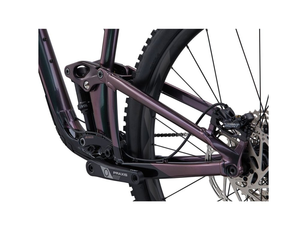 CELOODPRUŽENÝ TRAIL BIKE INTRIGUE 29 JE NABÍZEN TAKÉ V CENOVĚ DOSTUPNĚJŠÍM HLINÍKOVÉM PROVEDENÍ. STEJNĚ JAKO KARBONOVÁ VARIANTA DISPONUJE ZDVIHY 140/125 MM A MÁ NASTAVITELNOU GEOMETRII. INTRIGUE 29 JE URČEN NEJEN PRO TY BIKERKY, KTERÉ TU NEJTĚŽŠÍ ČÁST TRAILU POVAŽUJÍ ZA SVOU OBLÍBENOU PASÁŽ, ALE I PRO TY MÉNĚ ZKUŠENÉ, KTERÝM POMŮŽE ZDOKONALIT TECHNIKU JÍZDY V NÁROČNĚJŠÍM TERÉNU. HLAVNÍ PŘEDNOSTI Hliníkový rám ALUXX SL a karbonové vahadlo Intrigue 29 je postaven na hliníkovém rámu z naší vysoce kvalitní slitiny ALUXX SL, díky které je rám je velmi lehký, ale také dostatečně tuhý a pevný. Samozřejmostí je vnitřní vedení bowdenů a nechybí ani ochrana rámu v nejvíce exponovaných místech, tedy na spodní trubce a zadní stavbě u řetězu. Horní vahadlo odpružení je pro vyšší tuhost i pevnost a zároveň nižší hmotnost vyrobeno z karbonu. Skvělé odpružení Maestro Zadní odpružení Maestro poskytuje zdvih 125 mm a vpředu s ním perfektně spolupracuje vidlice se zdvihem 140 mm. Systém Maestro funguje na principu virtuálního (plovoucího) středu otáčení zadní stavby, odpružení je díky tomu plně aktivní a vysoce citlivé. Zároveň je eliminováno nežádoucí pohupování při šlapání, takže neztrácíte energii a jedete plynuleji, rychleji a s menší námahou. Nastavitelná geometrie Díky tzv. flip chip vložkám umístěným v horním vahadle odpružení si můžete snadno upravit geometrii kola tak, aby co nejlépe vyhovovala vašemu stylu jízdy nebo terénu, v jakém nejčastěji jezdíte – k dispozici jsou dvě polohy. Pro rychlý „agresivní“ terén je ideální nastavení do polohy Low (vidlice je více položená), nastavení do polohy High vytváří spíše XC-orientovanou jízdní pozici. -- Výstavní vzorkové kolo, které lze po dohodě prohlédnout v prodejně Progress Cycle Hostivice. -- -- Na kolo se nevztahuje doživotní záruka na rám a osazení se může lišit od uvedené specifikace. -- RÁM VELIKOST S BARVA Pistachio / Rifle Green RÁM ALUXX SL-Grade Aluminum front and rear triangles, 125mm Maestro Suspension, flip chip VIDLICE RockShox 35 Gold RL, 140mm, Boost, 15x110, tapered, 44mm offset, custom tuned for Liv TLUMIČ Fox Float DPS Performance, 185/50, custom tuned for Liv KOMPONENTY ŘÍDÍTKA Giant Contact TR35, alloy, 35mm S:760mm, M:760mm, L:780mm GRIPY Liv Supera, single lock ring PŘEDSTAVEC Giant Contact SL, 35mm S:50mm, M:50mm, L:50mm SEDLOVKA Giant Contact Switch dropper, remote S: 100mm travel / 30.9 x 345mm M: 125mm travel / 30.9 x 395mm L: 150mm travel / 30.9 x 499mm SEDLO Liv Sylvia OSAZENÍ ŘAZENÍ SRAM SX Eagle, 1x12 PŘEHAZOVAČKA SRAM SX Eagle BRZDY Shimano BR-MT420, hydraulic, Shimano RT-66 rotors [F]203mm, [R]180mm BRZDOVÉ PÁKY Shimano Deore BL-MT401 KAZETA SRAM SX, 11x50 ŘETĚZ SRAM SX Eagle KLIKY SRAM SX, 30t S:170mm, M:170mm, L:170mm STŘED SRAM DUB, press fit KOLA RÁFKY Giant AM 29, tubeless ready, sleeve-joint, 30mm inner width NÁBOJE [F] alloy 15x110, sealed bearing [R] alloy 12x148, sealed bearing DRÁTY Sapim PLÁŠTĚ [F] Maxxis Minion DHF 29x2.5WT, EXO, TR, tubeless [R] Maxxis Dissector 29x2.4WT, EXO, TR, tubeless DOPLŇKY tubeless prepared, max tire size 2.5", max chainring size 32tDoplňkové parametry