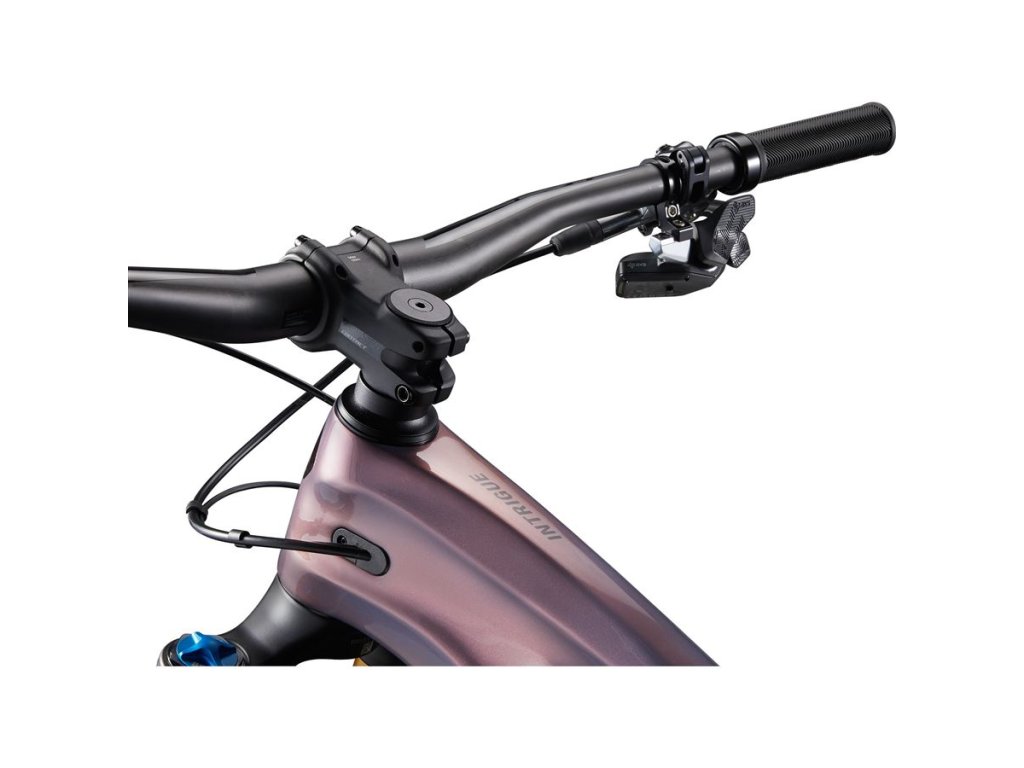 Nový karbonový Intrigue LT Advanced Pro je moderní trail/enduro bike navržený s jasným cílem – posouvat vaše limity v těžkém terénu nebo při enduro závodech. Odpružení Maestro se zdvihem 150 mm spolu s vidlicí 160 mm pohltí cokoliv, co vám trail postaví do cesty, a třípolohový flip chip vám umožní jemně doladit geometrii kola. Určitě se bude hodit také úložný prostor v rámu. Hlavní přednosti Moderní rám s odpružením Maestro Základem kola je karbonový rám Advanced Composite s moderní enduro geometrií, díky níž je kolo mimořádně stabilní ve sjezdech a zároveň překvapivě agilní ve výjezdech. Horní vahadlo odpružení je pro vyšší pevnost a nižší hmotnost karbonové a ve spodní rámové trubce je integrovaný úložný prostor na věci, které chcete mít vždy po ruce. Systém zadního odpružení Maestro se 150 mm zdvihu je plně aktivní a vysoce citlivý a zároveň u něj nedochází k nežádoucímu pohupování při šlapání. Nastavitelná geometrie Díky modernímu systému flip chip se třemi polohami (low/mid/high) si můžete jemně vyladit geometrii kola s ohledem na povahu terénu, styl jízdy a také velikost zadního kola, která u velikostí rámu M a L může být 29“ nebo 27,5“. Ke změně geometrie slouží excentrické vložky umístěné v horním vahadle odpružení. Změna pozice flip chipu má vliv především na úhel hlavové a sedlové trubky a projeví se adekvátně také na výšce středu šlapání (BB drop). Zadní kolo 29“ nebo 27,5“ Velikosti rámu M a L umožňují volbu velikosti zadního kola – můžete ponechat sériově dodávané kolo 29“ nebo ho vyměnit za kolo 27,5“ (nutno dokoupit). V konfiguraci 29/29“ bude kolo při zdolávání nerovností velmi stabilní a rychlé. Konfigurace MX (mixed wheels – smíšená kola) kombinuje skvělou obratnost zadní části kola s vysokou stabilitou a rychlým odvalováním vpředu. Velikosti rámu XS a S jsou z výroby postaveny se smíšenými koly a v této konfiguraci je nutné je ponechat. Specifikace Rám Velikost S: MX only Barva Mirage Rám Advanced-Grade Composite front and rear triangles, 150mm Maestro Suspension, flip chip – Maestro 3, integrated down tube storage Vidlice Fox 36 Factory Live Valve, 160mm, FIT4 damper, Boost, 15x110, Kabolt, tapered, 44mm offset Tlumič Fox Factory Live 185x55, custom tuned for Liv Komponenty Řídítka Giant Contact SLR TR35, composite, 35mm, 20mm rise XS: 760mm, S: 760mm, M: 760mm, L: 780mm Gripy Liv Tactal Pro Single Lock-On XS and S: 110mm, M and L: 120mm Představec Giant Contact SL, 35mm XS: 40mm, S: 50mm, M: 50mm, L: 50mm Sedlovka TranzX travel-adjustable dropper, remote XS: 120-150mm travel / 30.9 x 459mm S: 120-150mm travel / 30.9 x 459mm M: 140-170mm travel / 30.9 x 499mm L: 140-170mm travel / 30.9 x 499mm Sedlo Liv Sylvia Pedály platform Osazení Řazení SRAM AXS Rocker, 1x12 Přehazovačka SRAM XX1 Eagle AXS Brzdy Shimano XTR M9120, hydraulic, Shimano RT-66 rotors [F]203mm, [R]180mm Brzdové páky Shimano XTR, BL-M9100 Kazeta SRAM XX1 Eagle AXS, 10x52 Řetěz SRAM X01 Eagle Kliky SRAM XX1 Eagle DUB, 30t, 55mm chainline XS: 165mm, S: 170mm, M: 170mm, L: 170mm Střed SRAM DUB, press fit Kola Ráfky Zipp 3ZERO MOTO XS and S: [F] 29"", [R] 27.5"" M and L: [F] 29"", [R] 29" Náboje Zipp 3ZERO MOTO Dráty Zipp 3ZERO MOTO Pláště [Size XS, S, M and L, F] Maxxis Minion DHF 29x2.5WT, 3C Max Terra, EXO, TR, tubeless [Size XS and S, R] Maxxis Dissector 27.5x2.4WT, 3C Max Terra, EXO, TR, tubeless [Size M and L, R] Maxxis Dissector 29x2.4WT, 3C Max Terra, EXO, TR, tubeless Doplňky MRP AMg V2 chainguide, 3M tailgate protector, tubeless prepared, max tire size 2.5", max chainring size 32t, integrated down tube storage bagDoplňkové parametry