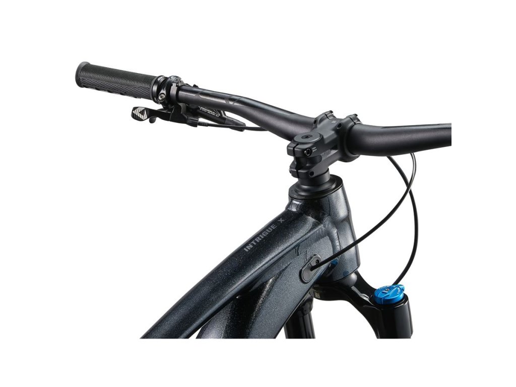 NOVÝ A MIMOŘÁDNĚ VŠESTRANNÝ INTRIGUE X BYL NAVRŽEN TAK, ABY POSUNUL VAŠE SCHOPNOSTI V TERÉNU, OD ZÁBAVNÝCH FLOW TRAILŮ AŽ PO NÁROČNÉ TECHNICKÉ PASÁŽE A SJEZDY, PLUS VŠECHNO MEZI TÍM. EXTRA VYSOKÝ FAKTOR ZÁBAVY ALE ZDALEKA NENÍ VŠE, CO TOHLE KOLO NABÍZÍ. ZVLÁDNETE S NÍM I DLOUHÁ STOUPÁNÍ, KTERÁ MUSÍTE ZDOLAT, ABYSTE SI UŽILY DALŠÍ PARÁDNÍ TRAILY A SJEZDY. MÁ NASTAVITELNOU GEOMETRII, MOŽNOST VOLBY VELIKOSTI ZADNÍHO KOLA A URČITĚ SE BUDE HODIT I ÚLOŽNÝ PROSTORU V RÁMU. HLAVNÍ PŘEDNOSTI Hliníkový rám ALUXX SL s odpružením Maestro Intrigue X je postaven na hliníkovém rámu ALUXX SL s moderní trailovou geometrií, díky níž je kolo mimořádně stabilní ve sjezdech a zároveň překvapivě agilní ve výjezdech. Ve spodní rámové trubce je integrovaný úložný prostor na věci, které chcete mít vždy po ruce na snadno přístupném místě. Díky našemu systému zadního odpružení Maestro se zdvihem 140 mm je jízda v terénu příjemnější a zábavnější a vpředu s ním perfektně spolupracuje 150 mm vidlice. Nastavitelná geometrie Třípolohový systém flip chip umístěný ve spoji vahadla a horních vzpěr zadní stavby umožňuje vyladit geometrii kola s ohledem na terén, styl jízdy a velikost zadního kola. Dále je tu nový flip chip hlavového složení, kterým se upravuje reach (tj. délka rámu) – díky této možnosti můžete kolo nastavit na krátký, střední nebo dlouhý reach. Všechna tato jemná nastavení optimalizují vaši jízdní pozici pro lepší ovladatelnost a stabilitu, ať už vás kolo zavede kamkoli. Možnosti zadního kola Rámy velikostí M a L mají 29“ kolo vpředu i vzadu s možností vyměnit zadní kolo za 27,5“, a vytvořit si tak konfiguraci „mullet“ (27,5“ kolo se prodává samostatně). Menší zadní kolo zvyšuje hbitost a hravost kola a zvětšuje vzdálenost mezi sedlem a zadním pláštěm. Pokud zůstanete u konfigurace 29/29“, získáte v terénu větší stabilitu a rychlost, protože větší kolo zlepšuje překonávání nerovností. Velikosti XS a S jsou postaveny s koly 29/27,5“ a je nutné je tak ponechat. -- Výstavní vzorkové kolo, které lze po dohodě prohlédnout v prodejně Progress Cycle Hostivice. -- -- Na kolo se nevztahuje doživotní záruka na rám a osazení se může lišit od uvedené specifikace. -- RÁM VELIKOST S BARVA Gloss Black Diamond/Matte Black RÁM ALUXX SL-grade aluminum front and rear triangles, 140mm Maestro Suspension, flip chip – Maestro 3, flip chip – headset, integrated down tube storage VIDLICE Fox 36 Float Performance, 150mm, Grip damper, Boost 15x110 Kabolt X, tapered, 44mm offset TLUMIČ Fox Float Performance, 185x52.5, custom tuned for Liv KOMPONENTY ŘÍDÍTKA Giant Contact TR35, 20mm rise, alloy XS: 760mm, S: 760mm, M: 760mm, L: 780mm GRIPY Liv Tactal Pro Single Lock-on XS/S: 120mm M/L: 130mm PŘEDSTAVEC Giant Contact SL, 35mm XS: 40mm, S: 50mm, M: 50mm, L: 50mm SEDLOVKA Giant Contact Switch, adjustable dropper, remote XS: 140-170mm travel / 30.9 x 470mm S: 140-170mm travel / 30.9 x 470mm M: 170-200mm travel / 30.9 x 530mm L: 170-200mm travel / 30.9 x 530mm SEDLO Liv Sylvia OSAZENÍ ŘAZENÍ Shimano SLX M7100, 1x12 PŘESMYKAČ - PŘEHAZOVAČKA Shimano SLX M7100, Shadow + BRZDY Shimano BR-MT520, hydraulic, Shimano RT-66 [F] 203mm, [R] 180mm BRZDOVÉ PÁKY Shimano BL-MT501 KAZETA Shimano SLX M7100, 10x51 ŘETĚZ KMC X12 KLIKY Shimano MT512-1, 30t, 55mm chainline XS: 165mm, S: 170mm, M: 170mm, L: 170mm STŘED Shimano, press fit KOLA RÁFKY Giant TR alloy WheelSystem, 30mm rim inner width XS/S: [F] 29, [R] 27.5 M/L: [F] 29, [R] 29 NÁBOJE alloy, sealed bearing DRÁTY Sapim PLÁŠTĚ Size XS, S, M and L, [F]: Maxxis Minion DHF 29x2.5WT, 3C Max Terra, EXO, TR, tubeless Size XS and S, [R]: Maxxis Dissector 27.5x2.4WT, 3C Max Terra, EXO, TR, tubeless Size M and L, [R]: Maxxis Dissector 29x2.4WT, 3C Max Terra, EXO, TR, tubeless DOPLŇKY 3M tailgate protector, tubeless prepared, integrated down tube storage bag, max tire size 2.5", max chainring size 34tDoplňkové parametry