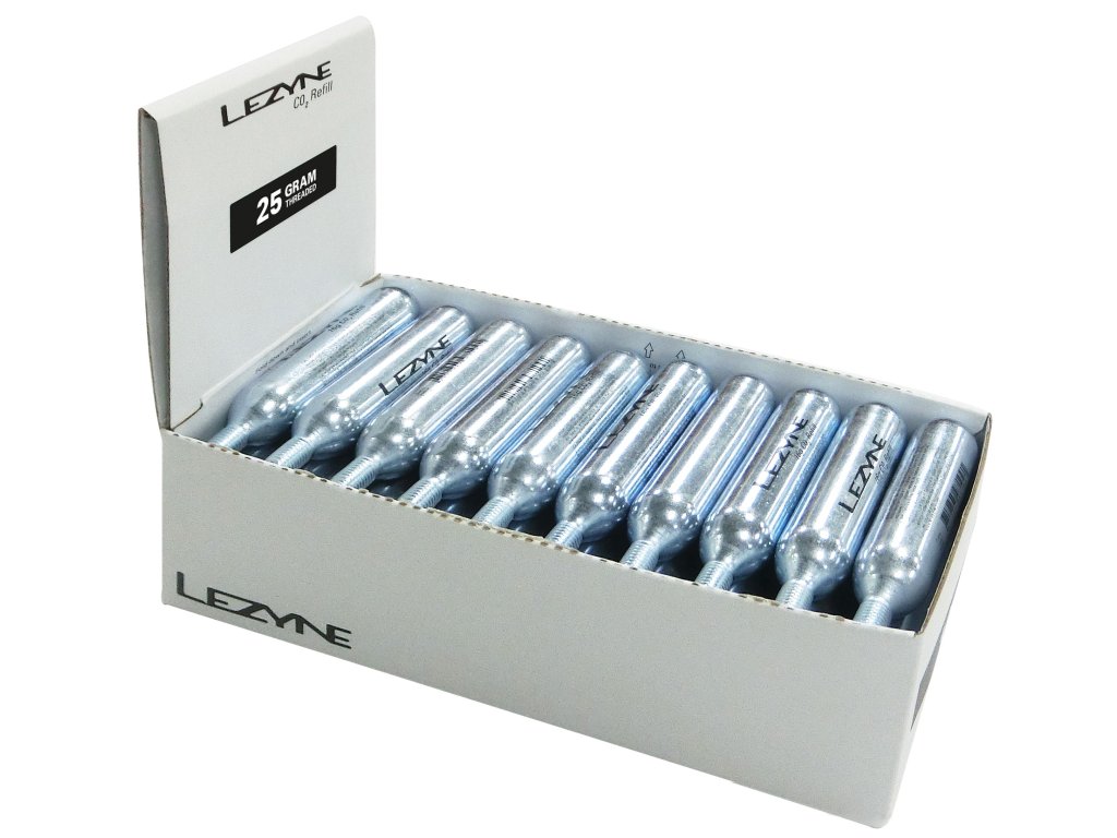 Závitové CO2 bombičky pro použití se všemi CO2 pumpami Lezyne. 25g CO2 bombičky obsahují silnější náplň vhodnou pro velkoobjemové pneumatiky horských kol. K dispozici jako 5dílné náhradní balení nebo stolní krabičky (20 kusů).Doplňkové parametry