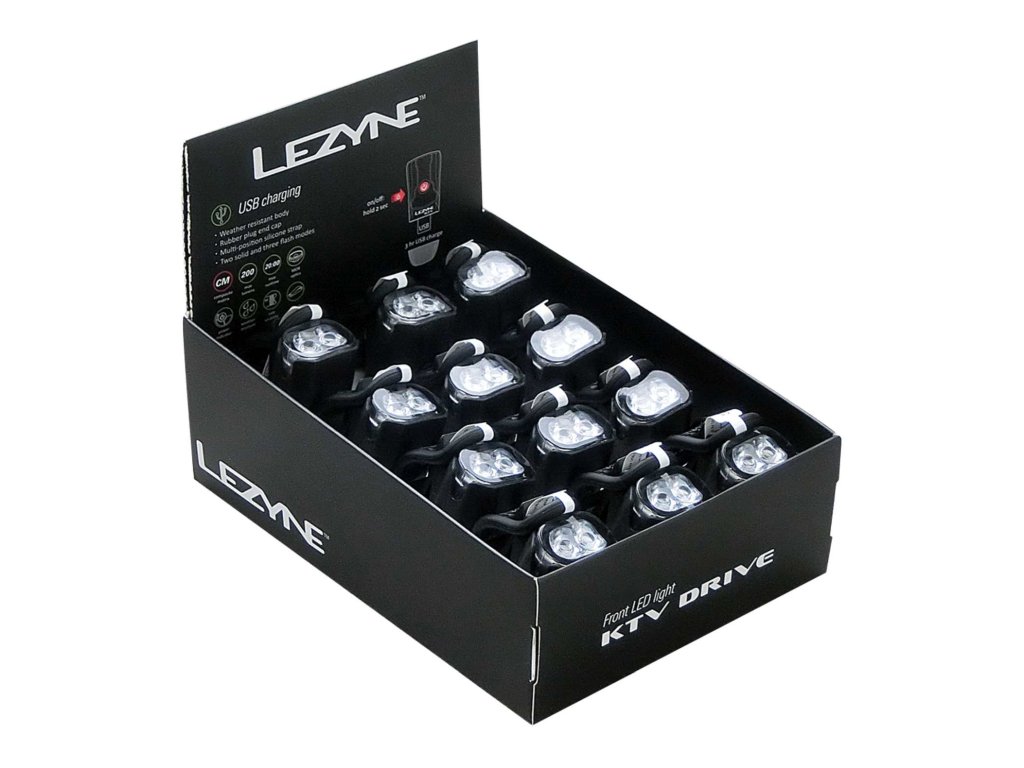 Kompaktní cyklistické bezpečnostní světlo, postavené na dvou vysoce výkonných LED zářičích, nabízí až 200 lumenů a poutavý režim denního blikání. Vyznačuje se lehkou, ale odolnou, lisovanou vodotěsnou konstrukcí (s krytím IPX7). KTV Drive Front nabízí pět režimů svícení, až 20 hodin provozu a integrovaný USB flash disk pro pohodlné bezdrátové nabíjení. Poznámka: Toto světlo se nedistribuuje na německém trhu.Doplňkové parametry
