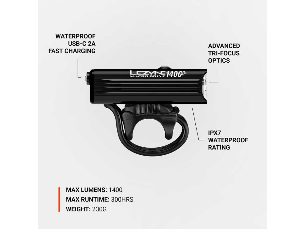 Lezyne MACRO DRIVE 1400+ FRONT SATIN BLACK