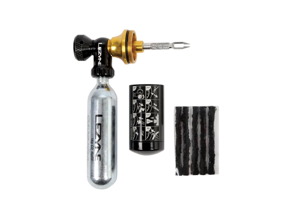 Tato inovativní sada 2 v 1 pro cyklistický dávkovač CO2 a opravu bezdušových pneumatik současně huští a utěsňuje bezdušové pneumatiky. Je vyrobena z obráběného hliníku, který je lehký a zároveň vysoce odolný. Kalená ocelová vrtačka vyhloubí otvor, vloží zátku a nafoukne pneumatiku pro efektivní a rychlou opravu. Otočný knoflík obráběný CNC ručně ovládá uvolňování plynu CO2. Hliníková nádobka drží pět dodávaných zátkových zátek a bezpečně ukládá vrták, když se nepoužívá. Vysoce kvalitní zátky do pneumatik agresivně utěsňují otvory, které jsou příliš velké na to, aby je bylo možné utěsnit pouze tmelem (velikost otvoru se liší pneumatika od pneumatiky). Elegantní a kompaktní design se pohodlně vejde do kapsy nebo se připevní na kolo. K dispozici jsou dvě možnosti sady: Dvě 20gramové bombičky s CO2 nebo žádné bombičky a jednoduchý popruh na suchý zip.