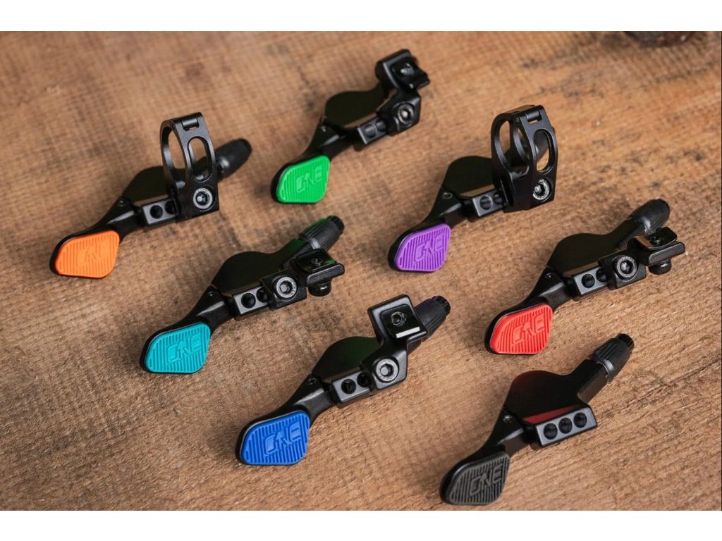 Nejnovější páčka teleskopické sedlovky OneUp V3 je lehčí a snáze zmáčknutelná než její předchůdce V2. Navíc má výměnnou gumičku pro palec, dostupnou v 7 barvách. Páčka OneUp V3 se prodává