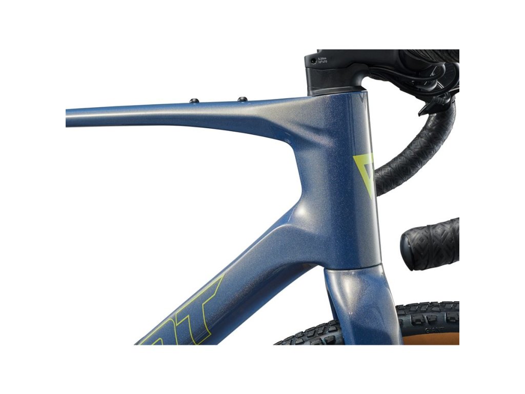 Pro ty, kteří mají rádi rychlou a ničím neomezenou jízdu na šotolině, je určen tento lehký karbonový gravel bike. Nový Revolt Advanced vám umožní zvolit si svůj cíl – připněte si na kolo startovní číslo a vyrazte za vítězstvím, nebo si naplánujte víkendové dobrodružství a zjistěte, kam až můžete dojet. Díky špičkovému karbonovému rámu, nastavitelnému rozvoru a vnitřnímu úložnému prostoru pro přepravu nezbytných věcí je Revolt Advanced připraven na všechno. Hlavní přednosti RYCHLÝ A VŠESTRANNÝ Karbonový rám a vidlice Advanced Composite společně přinášejí nízkou hmotnost, vysokou efektivitu a perfektní ovladatelnost. Dvoupolohový systém flip chip umístěný v zadních patkách umožňuje nastavit rozvor: krátký pro rychlejší ovládání nebo dlouhý pro větší prostor pro pláště (až 53 mm) a větší stabilitu. Rám také umožňuje volbu typu sedlovky, takže se dá použít buď sedlovka Giant D-Fuse pro vyšší pohodlí nebo standardní kulatá (tedy i teleskopická) sedlovka 30,9 mm. VYSOKÝ KOMFORT Rám má níže umístěné sedlové vzpěry menšího průměru pro ještě lepší pohlcování nárazů a vibrací. K vyššímu komfortu a tím i snížení únavy na hrubých cestách nebo na dlouhých vzdálenostech pomáhá také karbonová sedlovka D-Fuse (kromě modelu Revolt Advanced 1, který má sedlovku teleskopickou) a řídítka Contact XR D-Fuse – obojí společně funguje jako systém a pod zátěží mírně pruží, ovšem bez snížení tuhosti při zatáčení, stoupání nebo jízdě ze sedla. CHYTRÁ INTEGRACE Vnitřně vedené kabely nabízejí čistý a estetický vzhled kokpitu a lepší aerodynamický výkon. Snadno přístupný úložný prostor ve spodní rámové trubce vám umožní bezpečně přepravovat nářadí, výživu a další nezbytnosti. Další integrované úchyty na horní rámové trubce, vidlici a zadní stavbě usnadňují případnou instalaci brašen či blatníků. Zcela nová a speciálně tvarovaná ochrana rámu (pod řetězem a na spodní trubce) pomáhá chránit rám před nárazy a také tlumí hluk. RÁM VELIKOST M/L BARVA Midnight Moon RÁM Advanced-grade composite, 12x142mm thru-axle, disc, flip chip dropout, down tube storage VIDLICE Advanced-grade composite, full-composite OverDrive steerer, 12mm thru-axle, disc KOMPONENTY ŘÍDÍTKA Giant Contact XR D-Fuse, 31.8mm XS:42cm, S:42cm, M:44cm, M/L:44cm, L:46cm, XL:46cm GRIPY Stratus Lite 3.0 PŘEDSTAVEC Giant Contact AeroLight, -10 degree XS:50mm, S:60mm, M:70mm, M/L:80mm, L:80mm, XL:90mm SEDLOVKA Post Moderne, dropper, 30.9mm, 30mm suspension XS:295mm, S:345mm, M:345mm, M/L:345mm, L:395mm, XL:395mm SEDLO Giant Grit PEDÁLY no pedal [GA, Pan-Eu], platform pedal [GU, GV, GJ] OSAZENÍ ŘAZENÍ SRAM Apex 1, 1x12 PŘEHAZOVAČKA SRAM Apex XPLR BRZDY SRAM Apex hydraulic, Giant MPH rotors [F]160mm, [R]160mm BRZDOVÉ PÁKY SRAM Rival 1, left lever dropper switch KAZETA SRAM PG-1231, 12-speed, 11x44 ŘETĚZ SRAM Apex D1 KLIKY SRAM Apex 1 Wide DUB, 40t XS:170mm, S:170mm, M:172.5mm, M/L:172.5mm, L:175mm, XL:175mm STŘED SRAM DUB, press fit KOLA RÁFKY Giant P-X2 , alloy NÁBOJE Giant alloy, 12mm thru-axle DRÁTY Sapim PLÁŠTĚ Giant Crosscut Grip, 700x45c, tubeless DOPLŇKY Giant 1x chain guide, tubeless prepared, 53mm max tire size in "long" flip chip position, 45mm max tire size in "short" flip chip position, inframe storage bag MAXIMÁLNÍ ŠÍŘKA PLÁŠTĚ 53mmDoplňkové parametry