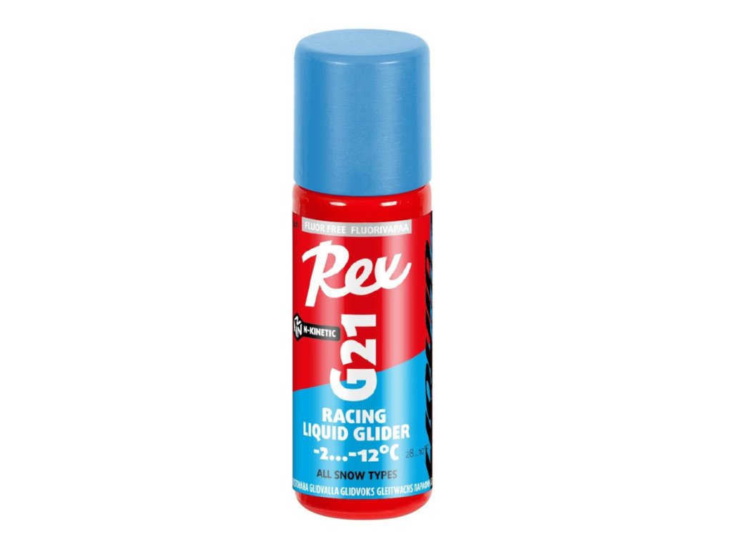 REX G21 je tekutá verze s aplikací přes houbičku modrého skluzného vosku ve spreji G21.