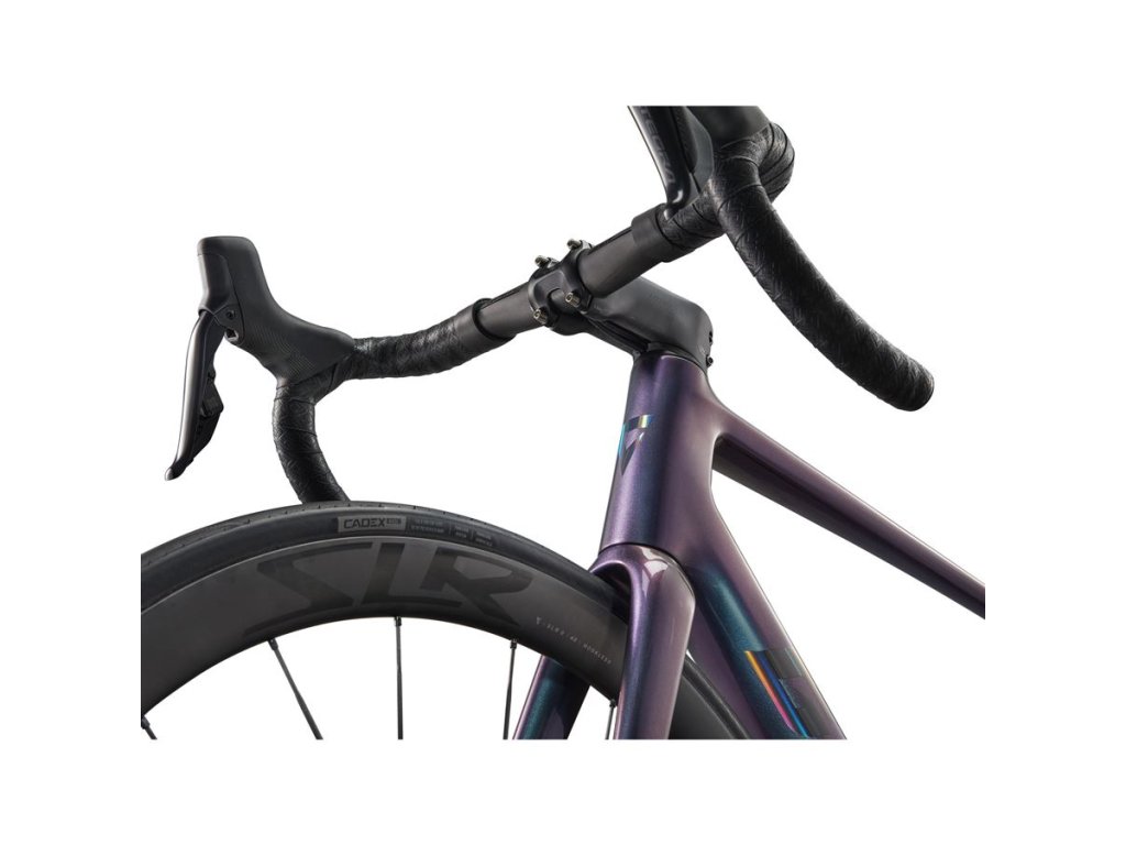 NOVÁ A CELKOVĚ JIŽ DESÁTÁ GENERACE LEGENDÁRNÍ ZÁVODNÍ ŘADY TCR OPĚT PŘINÁŠÍ CELOU ŘADU INOVACÍ. DÍKY SYSTÉMOVÉ INTEGRACI A INOVATIVNÍM KONSTRUKČNÍM METODÁM POSKYTUJÍ MODELY TCR JASNOU VÝHODU. VLAJKOVOU LODÍ TÉTO ŘADY JE TCR ADVANCED SL, ZÁVODNÍ KOLO ÚROVNĚ WORLDTOUR, KTERÉ JE VOLBOU PROFESIONÁLŮ PRO VŠESTRANNÝ VÝKON – OD RYCHLÝCH ROVINATÝCH ETAP AŽ PO „HORS CATÉGORIE“ – NEJVYŠŠÍ KATEGORII STOUPÁNÍ NA TOUR DE FRANCE. HLAVNÍ PŘEDNOSTI SYSTÉMOVÁ OPTIMALIZACE Rámová sada, kola, kokpit a další komponenty jsou navrženy, zkonstruovány a testovány společně, aby nejlépe fungovaly jako jeden systém. Zcela nový systém řízení OverDrive Aero spolu představcem Contact SLR AeroLight a řídítky Contact SLR představuje dokonalé řešení pro vnitřní vedení kabelů, přičemž integruje i horní krytku a distanční prvky do aerodynamičtějšího a uživatelsky přívětivějšího celku. VÍTĚZNÁ EFEKTIVITA Toto nekompromisní závodní kolo s větším poměrem tuhosti a hmotnosti, než jaký měla předchozí generace tohoto modelu, novým aerodynamickým tvarováním trubek a nižší celkovou hmotností přináší výbušnou akceleraci a nepoddajnou tuhost při šlapání. Výsledkem je špičkový výkon, který nejvíce oceníte v těch v okamžicích závodu, které jsou pro váš výsledek rozhodující. INTEGROVANÁ AERODYNAMIKA Tvary všech trubek jsou navrženy a zkonstruovány pomocí CFD modelování (Computational Fluid Dynamics) a testování v aerodynamickém tunelu. Od designu rámových trubek ve tvaru zkrácené elipsy až po nový design kokpitu a integraci komponentů – to vše přispívá k zefektivnění profilu, díky němuž má TCR Advanced SL 0 o 4,19 wattu lepší aerodynamické vlastnosti než předchozí generace. RÁM VELIKOST ML BARVA Blue Dragonfly / Iris RÁM Advanced SL-Grade Composite, 12x142mm thru-axle, integrated seatpost, disc VIDLICE Advanced SL-Grade Composite, full-composite OverDrive Aero steerer, 12x100mm thru-axle, disc KOMPONENTY ŘÍDÍTKA Giant Contact SLR XS:39/40cm, S:39/40cm, M:39/42cm, M/L:39/42cm, L:41/44cm, XL:41/44cm GRIPY Stratus Lite 2.0 PŘEDSTAVEC Giant Contact SLR AeroLight XS:80mm, S:90mm, M:100mm, M/L:110mm, L:110mm, XL:120mm SEDLOVKA Giant Integrated Seatpost, -5/+15mm offset SEDLO Giant Fleet SLR OSAZENÍ ŘAZENÍ Shimano Ultegra Di2 PŘESMYKAČ Shimano Ultegra Di2 FD-R8150 PŘEHAZOVAČKA Shimano Ultegra Di2 RD-R8150 BRZDY Shimano Ultegra Di2 hydraulic, Shimano RT-CL800 rotors [F]160mm, [R]140mm BRZDOVÉ PÁKY Shimano Ultegra Di2 KAZETA Shimano Ultegra, 12-speed, 11x34 ŘETĚZ Shimano CN-M8100 KLIKY Shimano Ultegra, 36/52 with Giant Power Pro power meter XS:170mm, S:170mm, M:172.5mm, M/L:172.5mm, L:175mm, XL:175mm STŘED Shimano, press fit KOLA RÁFKY Giant SLR 0 40 WheelSystem, [F]40mm, [R]40mm NÁBOJE [F] Giant Low Friction Hub, CenterLock, 12mm thru-axle [R] Giant Low Friction Hub, 40t ratchet driver, CenterLock, 12mm thru-axle DRÁTY Giant Aero Carbon Spoke PLÁŠTĚ CADEX Race GC, tubeless, 700x25c (28mm), folding DOPLŇKY computer mount, Airway Eco Composite water bottle cage, tubeless prepared, 33mm max tire sizeDoplňkové parametry