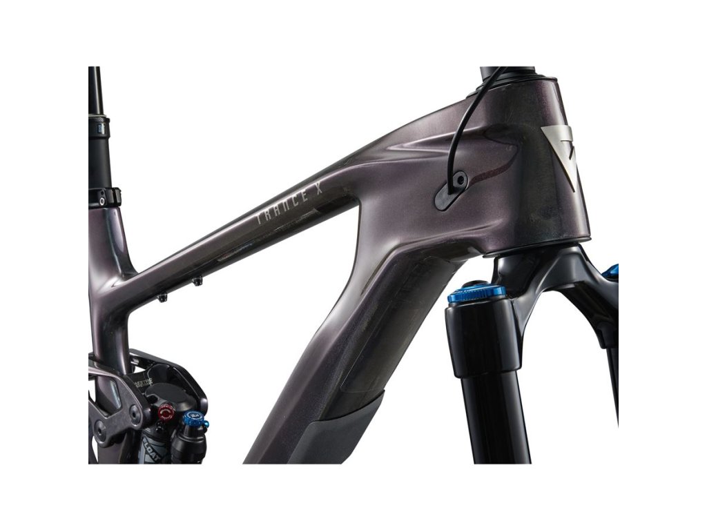 MIMOŘÁDNĚ VŠESTRANNÝ A NEUVĚŘITELNĚ ZÁBAVNÝ, TAKOVÝ JE TRANCE X ADVANCED VE SVÉ NOVÉ GENERACI. TOHLE KOLO JSME NAVRHLI TAK, ABYSTE NA NĚM MOHLI JEZDIT (TÉMĚŘ) VŠECHNO – OD ZÁBAVNÝCH FLOW TRAILŮ PŘES NÁDHERNÉ PŘÍRODNÍ TRAILY AŽ PO TECHNICKY HODNĚ NÁROČNÉ PASÁŽE A SJEZDY. A SAMOZŘEJMĚ I DLOUHÁ STOUPÁNÍ, KTERÁ MUSÍTE ZDOLAT, ABYSTE SI UŽILI DALŠÍ PARÁDNÍ TRAILY A SJEZDY. KROMĚ NASTAVITELNÉ GEOMETRIE MÁTE MOŽNOST VOLBY VELIKOSTI ZADNÍHO KOLA A CHYBĚT NESMÍ ANI ÚLOŽNÝ PROSTORU V RÁMU. HLAVNÍ PŘEDNOSTI Karbonový rám s odpružením Maestro Trance X Advanced je postaven na karbonovém rámu Advanced Composite s moderní trailovou geometrií, díky níž je kolo mimořádně stabilní ve sjezdech a zároveň překvapivě svižné ve výjezdech. Ve spodní rámové trubce je integrovaný úložný prostor na věci, které chcete mít vždy po ruce na snadno přístupném místě. Zadní odpružení Maestro poskytuje zdvih 140 mm (tedy o 5 mm víc, než na předchozí generaci tohoto modelu) a vpředu s ním perfektně spolupracuje 150 mm vidlice. Nastavitelná geometrie Třípolohový systém flip chip umístěný ve spoji vahadla a horních vzpěr zadní stavby umožňuje vyladit geometrii kola s ohledem na terén, styl jízdy a velikost zadního kola. Dále je tu nový flip chip hlavového složení, kterým se upravuje reach (tj. délka rámu) – díky této možnosti můžete kolo nastavit na krátký, střední nebo dlouhý reach. Všechna tato jemná nastavení optimalizují vaši jízdní pozici pro lepší ovladatelnost a stabilitu, ať už vás kolo zavede kamkoli. Možnosti zadního kola Všechny velikosti rámu mají 29“ kolo vpředu i vzadu s možností vyměnit zadní kolo za 27,5“, a vytvořit si tak konfiguraci „mullet“ (27,5“ kolo se prodává samostatně). Menší zadní kolo zvyšuje hbitost a hravost kola a zvětšuje vzdálenost mezi sedlem a zadním pláštěm, což je vhodné především pro jízdu v hodně prudkém a technickém terénu. Pokud zůstanete u konfigurace 29/29“, získáte v terénu větší stabilitu a rychlost, protože větší kolo zlepšuje překonávání nerovností. -- Výstavní vzorkové kolo, které lze po dohodě prohlédnout v prodejně Progress Cycle Hostivice. -- -- Na kolo se nevztahuje doživotní záruka na rám a osazení se může lišit od uvedené specifikace. -- RÁM VELIKOST M BARVA Arctic Light/Chrome RÁM Advanced-Grade Composite front and rear triangles, 140mm Maestro suspension, 12x148mm thru-axle, 27.5 or 29-inch rear wheel compatible, flip chip - Maestro 3, flip chip - headset, integrated down tube storage and under-top tube storage mounts VIDLICE Fox 36 Performance Elite, 150mm, GRIP 2 damper, 15x110 Kabolt X, 44mm offset TLUMIČ Fox Float X Performance Elite, two-position LSC adjust, 185/52.5, custom tuned for Giant KOMPONENTY ŘÍDÍTKA Giant Contact SL TR35, alloy, 780x35mm, 20mm rise GRIPY Giant Tactal Pro Single Lock-On, 132x35mm PŘEDSTAVEC Giant Contact SL 35 S:40mm, M:40mm, L:50mm, XL:50mm SEDLOVKA Contact Switch AT dropper, remote S: 110-140mm travel / 30.9 x 395mm M: 140-170mm travel / 30.9 x 470mm L: 170-200mm travel / 30.9 x 530mm XL: 170-200mm travel / 30.9 x 530mm SEDLO Giant Romero SL OSAZENÍ ŘAZENÍ SRAM AXS Pod, 1x12 PŘEHAZOVAČKA SRAM GX Eagle AXS, T-Type BRZDY Shimano Deore XT BR-M8120, hydraulic, four piston, Shimano RT-66 rotors [F]203mm, [R]180mm BRZDOVÉ PÁKY Shimano Deore XT BL-M8100 KAZETA SRAM GX, T-Type, 10x52 ŘETĚZ SRAM GX, T-Type KLIKY SRAM GX, T-Type, 30t, 55mm chainline S:165mm, M:170mm, L:170mm, XL:170mm STŘED SRAM DUB, Press Fit KOLA RÁFKY Giant TRX WheelSystem, carbon, hookless, 30mm inner width, 40mm outer width, 22mm height, Wide Guard Technology NÁBOJE [F] Giant MTB alloy, six-bolt [R] Giant MTB alloy, 72t POE (Points of Engagement), six-bolt, XD driver body DRÁTY Sapim, 28, straight pull, DBL Technology PLÁŠTĚ [F] Maxxis Minion DHF, 29x2.5 WT, 3C 60 tpi, MaxxTerra, EXO, TR [R] Maxxis Dissector 29x2.4 WT, 60 tpi, 3C MaxxTerra, TR, tubeless DOPLŇKY tubeless prepared, 2.5" max tire size, 34t max chainring size, 3M tailgate protector, down tube and chainstay protectionDoplňkové parametry