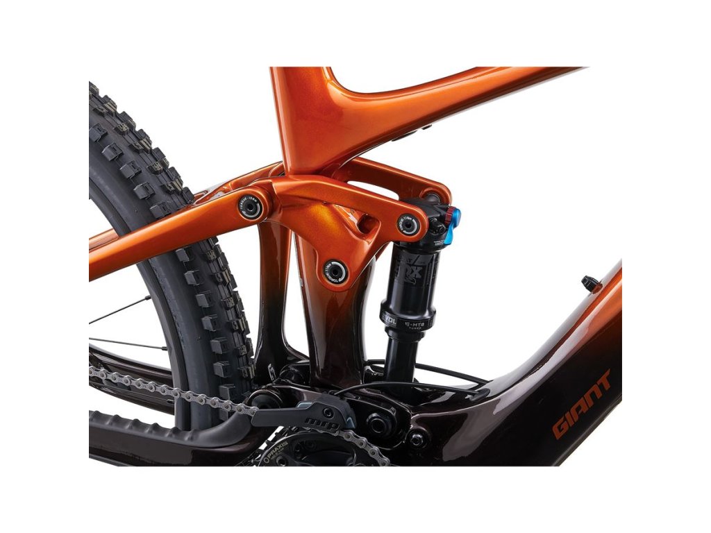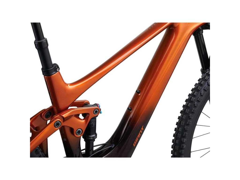 ZRYCHLETE VE STOUPÁNÍCH, PROPLUJTE SKALAMI A KAMENÍM, UŽIJTE SI VĚTŠÍHO VÝKONU, OVLADATELNOSTI A KONTROLY S LEHKÝM CELOODPRUŽENÝM ELEKTROKOLEM. NOVÁ VELMI ŠTÍHLÁ BATERIE MINIMALIZUJE HMOTNOST, TAKŽE TECHNICKÉ TRAILY MŮŽETE JEZDIT ZPŮSOBEM, O KTERÉM JSTE VŽDYCKY SNILI. HLAVNÍ PŘEDNOSTI Nižší hmotnost Nová baterie EnergyPak 400 byla navržená s ohledem na maximální prostorovou úspornost. Dostanete veškerý výkon, ale v rozměrově menším balení, které je čistě integrované do karbonového rámu. Pokročilé ovládání Dálkové ovládání RideControl Ergo 3 je namontované na úplně nových integrovaných karbonových řídítkách Giant Contact SLR. Ovládání lze namontovat na obě strany řídítek, takže ovládací prvky můžete přizpůsobit svým potřebám a kokpit bude přehledný s opticky čistými liniemi. Více výkonu Nový motor SyncDrive Pro, vyvinutý ve spolupráci se značkou Yamaha, poskytuje silný točivý moment 85 Nm a váží pouhých 2,7 kilogramů. Výsledkem je razantnější zrychlení a lepší schopnost stoupat v technických trailech. HYBRIDNÍ TECHNOLOGIE MOTOR SyncDrive Pro 2, 85 Nm, powered by Yamaha OVLÁDACÍ JEDNOTKA RideControl Ergo 3, RideControl GO integrated in top tube DISPLEJ ANT+ wireless display compatible BATERIE EnergyPak Smart 400, EnergyPak Plus range extender compatible RÁM VELIKOST XL BARVA Amber Glow/Cordovan RÁM Advanced-grade composite frame, Advanced-grade rear triangle, Advanced forged composite upper rocker, 140mm Maestro suspension system VIDLICE Fox 36 Float Performance, 150mm travel, 44mm offset, Grip 3-position Micro Adjust damper, Boost 110x15QR TLUMIČ Fox DPS Performance, EVOL Large Volume sleeve, 3-position Lever, 185x52.5mm Trunnion mount, custom tuned KOMPONENTY ŘÍDÍTKA Giant Contact SL 35 Trail, 35x780mm GRIPY Giant Tactal Pro-E, single lock-on PŘEDSTAVEC Giant Contact SL 35 SEDLOVKA Giant Contact Switch, dropper, 30,9mm (S:125/M:150/ LandXL:170) SEDLO Giant Romero, Neutral OSAZENÍ ŘAZENÍ Shimano Deore SLX PŘESMYKAČ MRP HD2 co-moulded chain guide PŘEHAZOVAČKA Shimano Deore SLX, 12-speed, Shadow+ BRZDY Shimano SLX BR-M7120, 4-piston, hydraulic disc, 203mm BRZDOVÉ PÁKY Shimano SLX, I-spec EV KAZETA Shimano HG-M6100, 10-51T, 12-speed ŘETĚZ KMC e.12 Sport, NP/NP, e-bike optimized KLIKY Praxis Wavetm 36T Cold Forged 4130 premium steel Praxis e-Cadet+ custom forged crankarm set (S:160, M/L: 165, XL:170) KOLA RÁFKY Giant AM 29" [F]/ 27.5" [R], Tubeless ready, 30mm inner width, e-bike optimized NÁBOJE Shimano MT410, Boost, Center-Lock, [F] 110x15 [R] 148x12mm MicroSpline Drive Body Thru-axle DRÁTY Sapim E-Lite [R] Race [F], e-bike optimized PLÁŠTĚ Maxxis Minion DHF 29X2.50" Foldable, TLR, EXO [F]Maxxis Dissector 27.5x2.4" Foldable, TLR, EXO [R] DOPLŇKY tubeless kit (liquid, valves, levers, manual, tool), inner tube supplied PŘÍSLUŠENSTVÍ SVĚTLO Optional: Giant Recon series e-bike lights available and direct connectable Full Power. Full Speed. - The all-new Trance X Advanced E+ EliteDoplňkové parametry