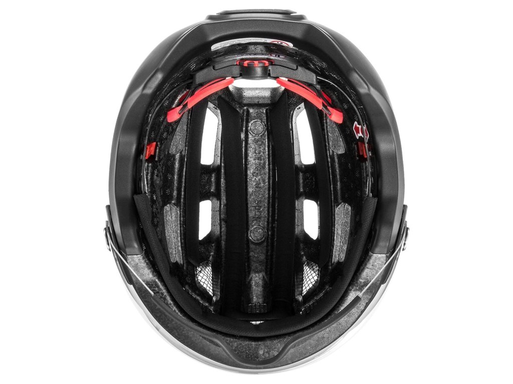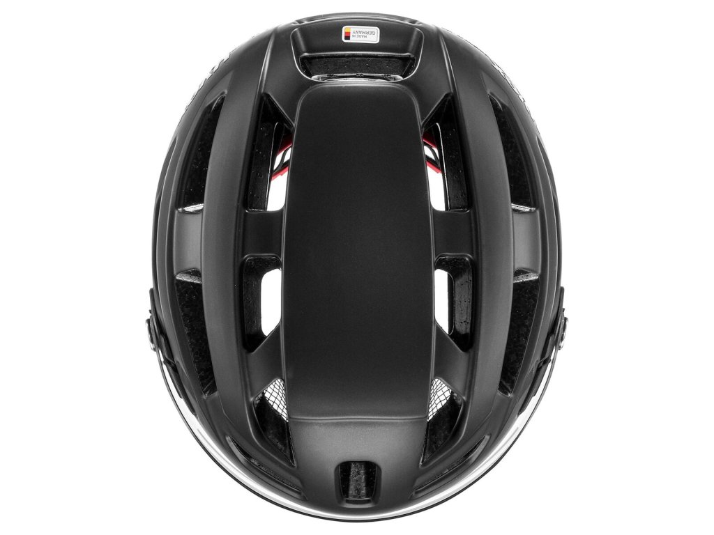 Vidět a být viděn – stylová odpověď na běžné kombinace helmy/brýlí. Vypadá skvěle s lehce zrcadlovým hledím, za kterým budete připraveni na všechno. Je to první tvarovaná helma s integrovaným hledím do každého počasí ve stříbrné barvě litemirror (kategorie ochrany 1). V městském provozu poskytuje zorník Uvex finale vašim očím optimální ochranu před sluncem a větrem. Můžete jej dokonce nosit přes dioptrické brýle a volitelně jej upgradovat na tmavší model pro silnější ochranu před sluncem. Položený tvar se spodními bočními panely a větším prostorem vzadu na hlavě vám poskytuje extra ochranu a zároveň vypadá skvěle jako helma na horském kole. Díky systému 3D IAS můžete upravit šířku helmy tak, aby perfektně seděla. Nabízí 20 ventilačních otvorů a také vnitřní ventilační kanály, které zajišťují optimální proudění vzduchu a chladnou hlavu v hustém provozu. Helma je dodávána se zásuvnou LED diodou a také reflexními pásky a logy, abyste byli večer lépe viditelní.Doplňkové parametry