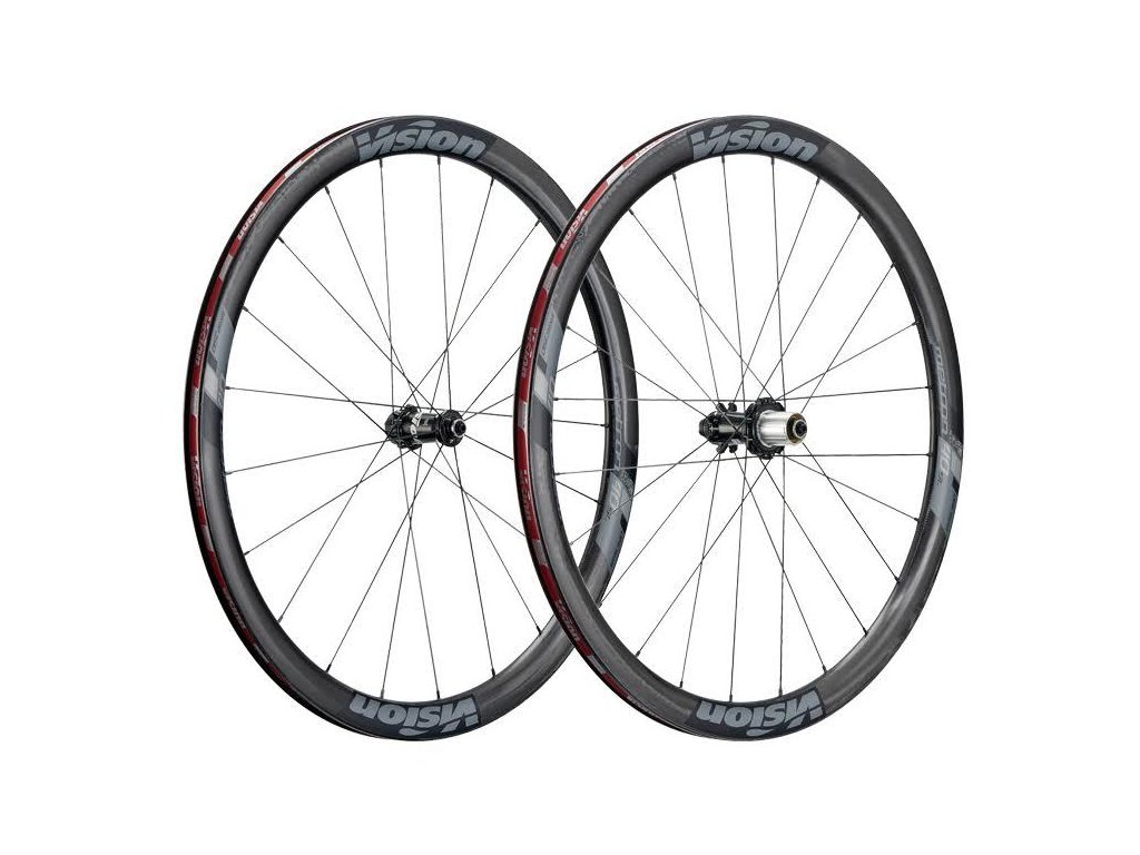 Základom kolies Vision Metron 40 SL Disc CL Clincher sú 40mm vysoké aerodynamické bezdušové plášťové ráfiky vyrobené z UD karbónu s vnútornou šírkou 17mm. Špecifický "U" profil ráfikov bol vyvinutý na základe rozsiahlych CFD analýz a testovaný vo veternom tuneli. Zaručuje výbornú ovladateľnosť a tuhosť kolies za akýchkoľvek podmienok, najmä však pri jazde v bočnom vetre. Kolesá sú zapletené na diskových nábojoch Vision druhej generácie vybavených technológiou P.R.A.(Preload Reduction Assembly) a kvalitnými ložiskami pre minimalizáciu trenia a maximálnu efektivitu prenosu energie na 17mm vnútornej oske. Zmeny prichádzajú v oblasti orecha, ktorý má o 5mm väčšiu vzdialenosť medzi ložiskami a širšie západky. Predné koleso obsahuje výplet pozostávajúci z 21 drôtov. Zadné koleso obsahuje 24 drôtov. Duralový orech je kompatibilný s cestnými kazetami FSA, Shimano a Sram 9/10/11Speed. Kolesá sú dodávané spolu s prepravným vakom a rýchloupínacími oskami Vision QR-93. Balenie ďalej obsahuje redukcie pre predný náboj pre osky 12x100mm a 15x100mm, pre zadný náboj pre osky 12x135mm a 12x142mm. Hmotnosť 1580g. Minimálna doporučená šírka plášťov je 25mm. Maximálny doporučený tlak v plášťoch je 8.5 Bar (125 PSI).Doplňkové parametry