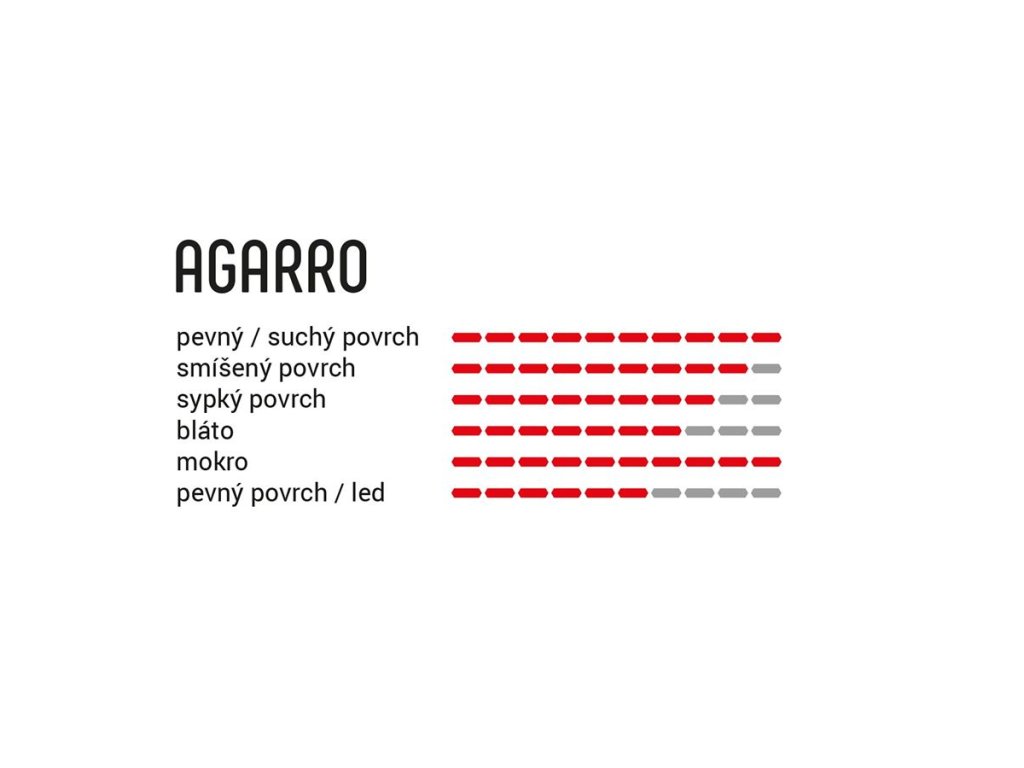 AGARRO Novinka pro rok 2020. Agesivnější vzorek než Barzo, ale rychlejší než Martello. Tento nový přírůstek do italské rodiny milovníků zdolávání nakloněných rovin je ideálním all mountain pláštěm, který je ale schopen se vypořádat i s lehkým endurem. Výborný v záběru, jistý v zatáčkách, spolehlivý při brzdění. Dost agresivní a odolný, přitom ale stále ještě slušně rychlý a s přijatelným valivým odporem. Samozřejmostí jsou čtyři směsi v jednom plášti a nový Grafen 2.0. Většina špuntů je opatřena více lamelami pro příkladnou adhezi na kořenech a kamenech. Bezdušová verze. Konstrukce kordu a použití " TRAIL" , NYLON 120 TPI, zesílená bočnice proti proříznutí. APF vložka proti průrazu u patky. Kevlarová patka. 4C- Čtyři směsi v jednom plášti. Inovovaná Grafen 2.0 směs pro ještě vyšší odolnost, delší nájezd a maximální grip za mokra.Doplňkové parametry