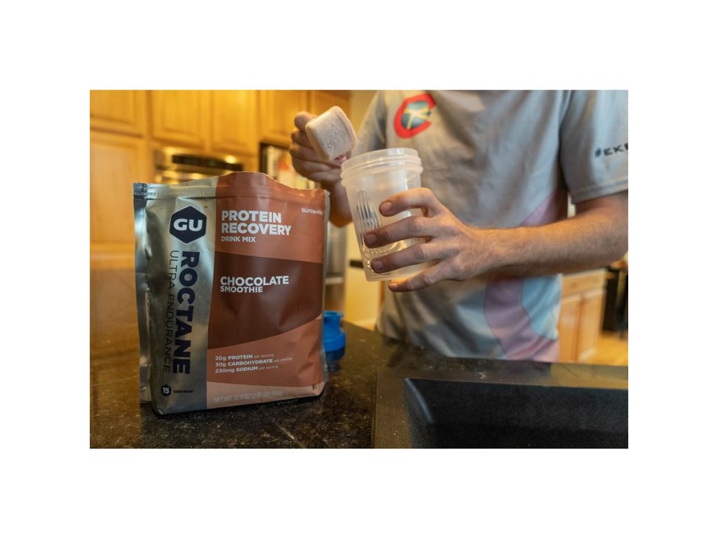 AKCE EXPIRACE 02/2026! Doprodej skladových zásob! GU Roctane Recovery Drink Mix je nový regenerační nápoj, který má za cíl pomoci sportovci doplnit tekutiny a ochránit svalová vlákna tak, aby mohl v plnohodnotném tréninku pokračovat i další den. Roctane Recovery Drink Mix vyslyšel požadavek závodníků na větší obsah proteinu v nápoji a nyní přináší 2x více kvalitního proteinu než původní Recovery Drink a zařadil se tím do Roctane rodiny. Regenerační nápoj obsahuje v jedné dávce 20 g vysoce kvalitního syrovátkového proteinu, který zajišťuje opravu a obnovu svalových vláken. Kromě izolátu syrovátkového proteinu nápoj obsahuje také hydrolyzát tohoto proteinu, který se vyznačuje větším obsahem leucinu. Leucin je velmi důležitá aminokyselina pro růst svalové hmoty. Díky tomuto komplexnímu složení probíhá regenerace svalů daleko rychleji a efektivněji. Každá porce také obsahuje rychle působící uhlohydráty pro doplnění zásob svalového glykogenu a spolu se sodíkem ztraceným pocením rehydratuje organismus. Díky doplnění svalového glykogenu nedochází ke spalování energie ze svalové bílkoviny. Doporučujeme rozmíchat 2 odměrky prášku v 250ml vody a vypít do 30 minut po ukončení tréninku nebo závodu. SACHARIDY - Vyvážená směs komplexních a jednoduchých cukrů PROTEIN - Kvalitní izolovaný syrovátkový protein k regeneraci svalů a pro zvýšení výkonu - nyní 2x více=20g proteinu AMINOKYSELINY - Podporující odolnost imunitního systému a urychlující regeneraci ELEKTROLYTY - Zdroj sodíku (160 mg) a draslíku PŘÍCHUŤ Chocolate Smoothie (čokoládové smoothie) EXPIRACE 02/2026 BALENÍ sáček 930 g (15 dávek instantního nápoje)Doplňkové parametry